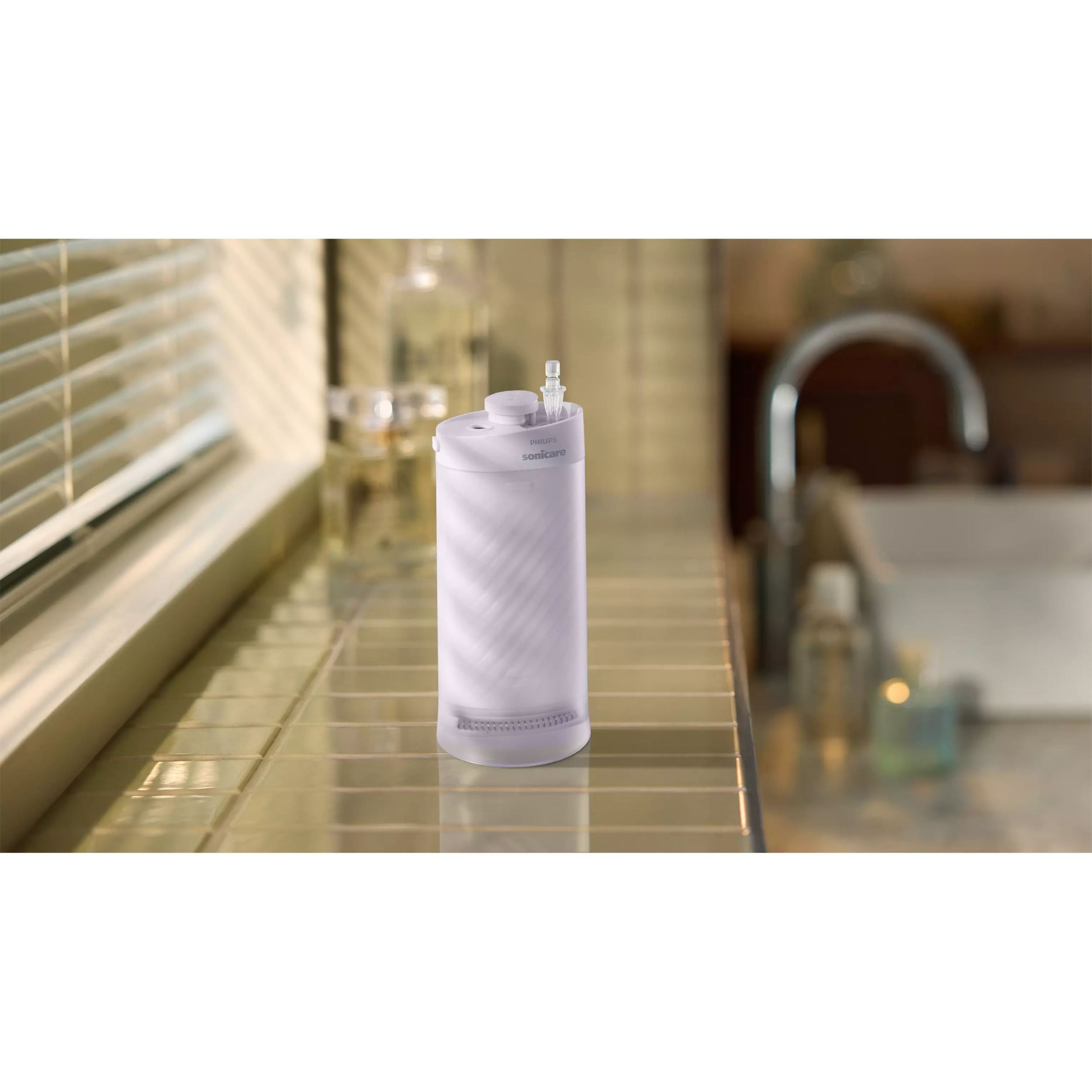 Irigator bucal portabil Philips Sonicare Compact Flosser 1000 HX3333/23, Rezervor 200ml, 2 capete de curățare, cablu încărcare USB, Violet