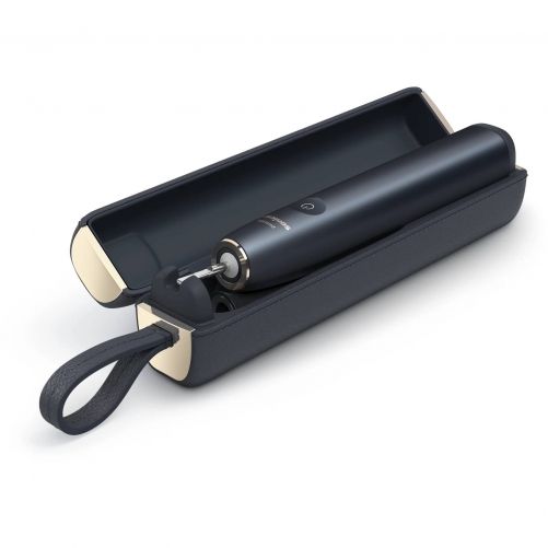 Toc de transport premium cu USB. Tocul de transport elegant şi compact poate fi pus în orice geantă pentru confort fără griji când nu eşti acasă, tocul rezistent este îmbrăcat în piele ecologică moale, pentru mai multă uşurinţă, include un port USB-C integrat şi un cablu de încărcare USB, astfel încât să poţi reîncărca cu uşurinţă periuţa de dinţi fără a o scoate din toc.