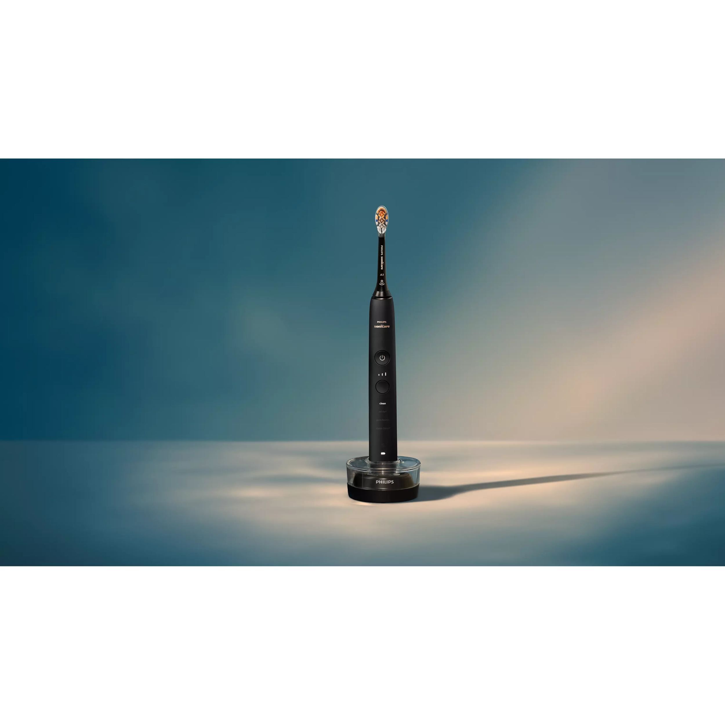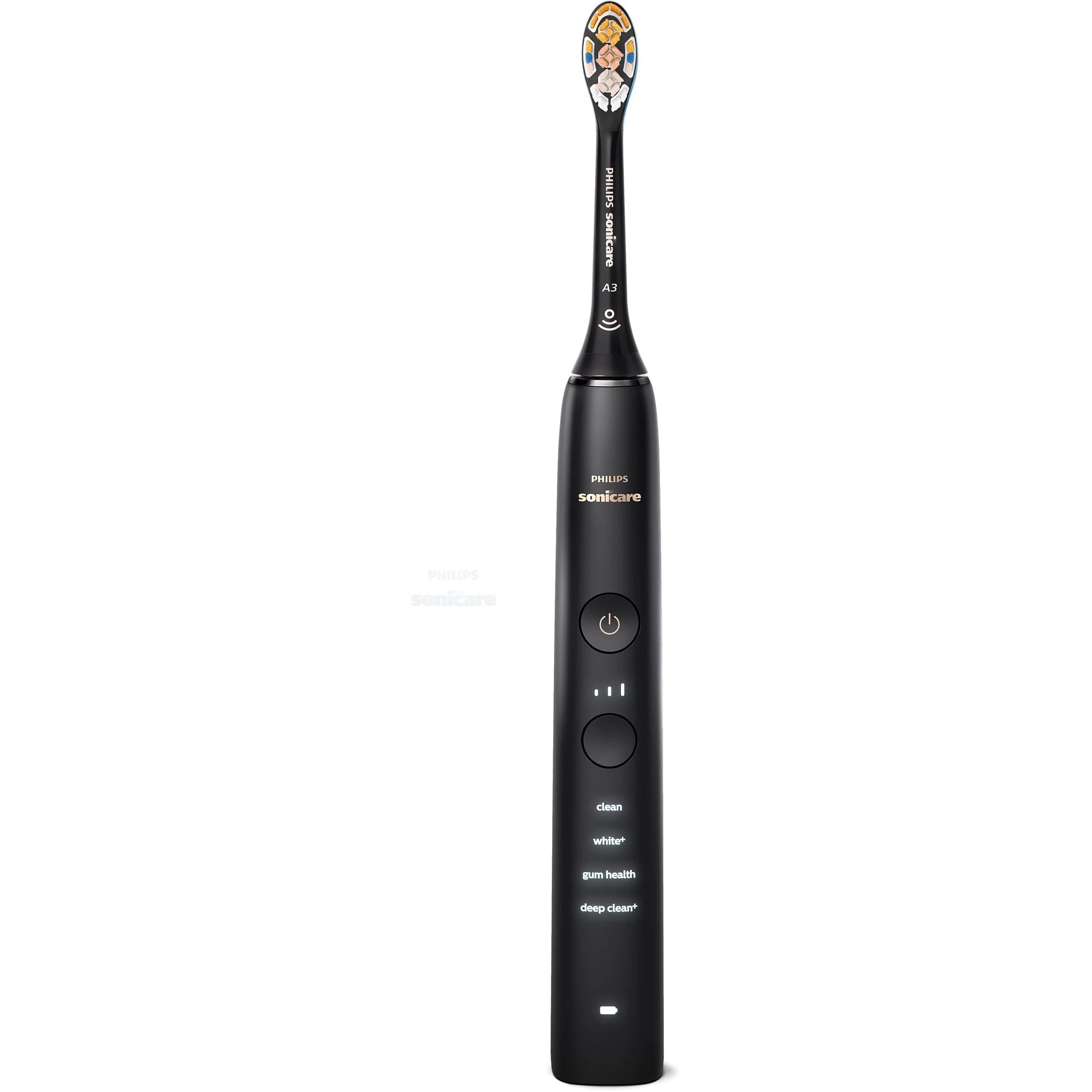 Set 2 periuţe de dinți electrice Philips Sonicare DiamondClean 9000 HX9914/69, Senzor presiune, 4 moduri, 3 intensități, Pahar, Stand, App Sonicare, O încărcare 14 zile, Rose Gold & Black