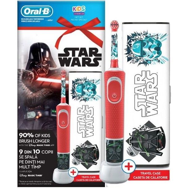 Aplicaţia Disney Magic Timer de la Oral-B. Periuta Oral-B Star Wars este compatibilă cu aplicaţia Disney MagicTimer de la Oral-B. Descărcaţi aplicaţia pentru a vă ajuta copiii să efectueze un periaj de 2 minute, conform recomandărilor medicului stomatolog şi să înveţe obiceiurile corecte de îngrijire orală pe care le vor folosi toată viaţa. Aplicaţia este disponibilă pentru descărcare gratuită în Google Play şi App Store.
