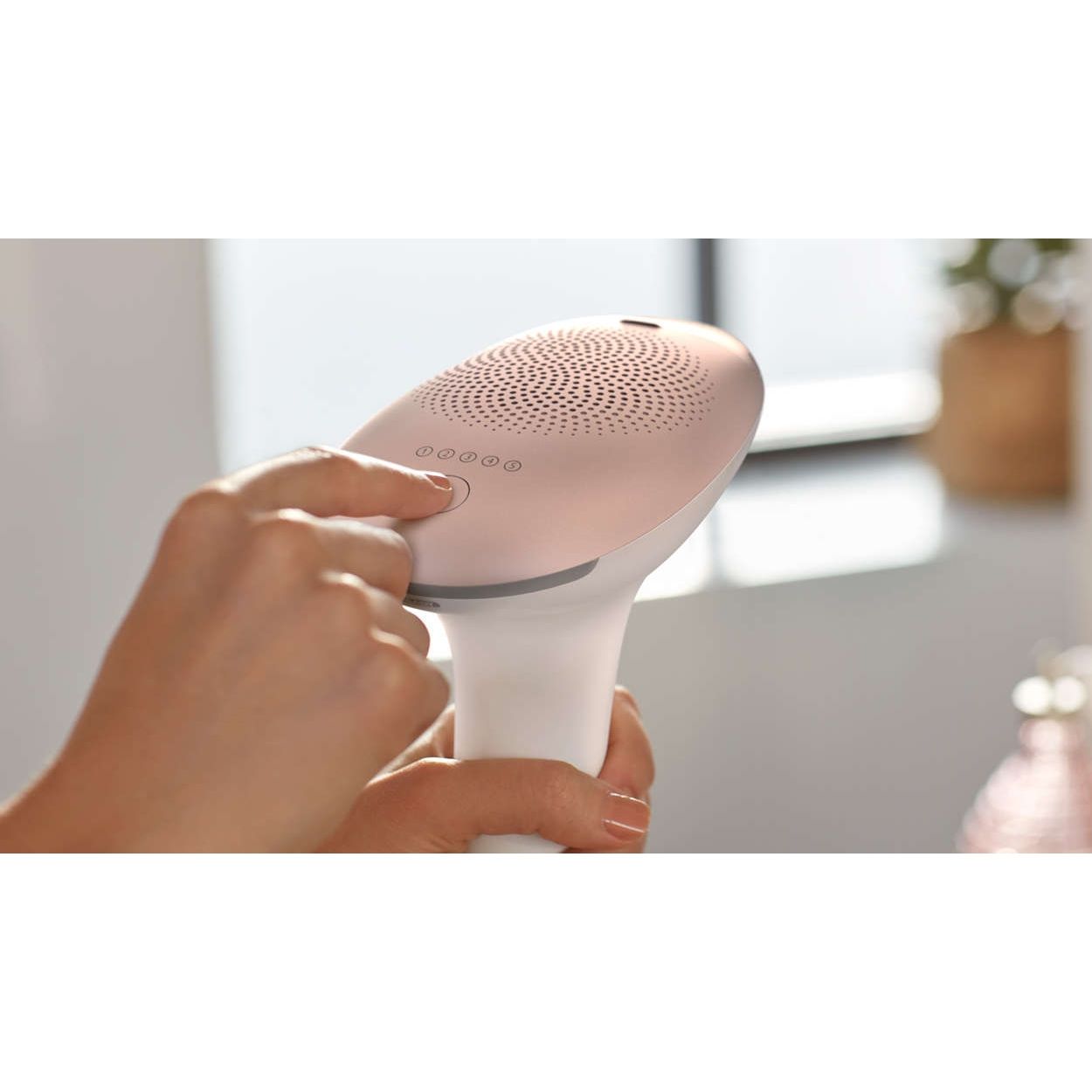 Senzor integrat de depistare a nuanţei pielii. Senzorul integrat pentru detectarea nuanţei pielii măsoară nuanţa pielii tratate la începutul fiecărei şedinţe şi ocazional în timpul şedinţei. Dacă detectează o nuanţă de piele prea închisă pentru acest produs, senzorul opreşte automat emiterea de impulsuri.