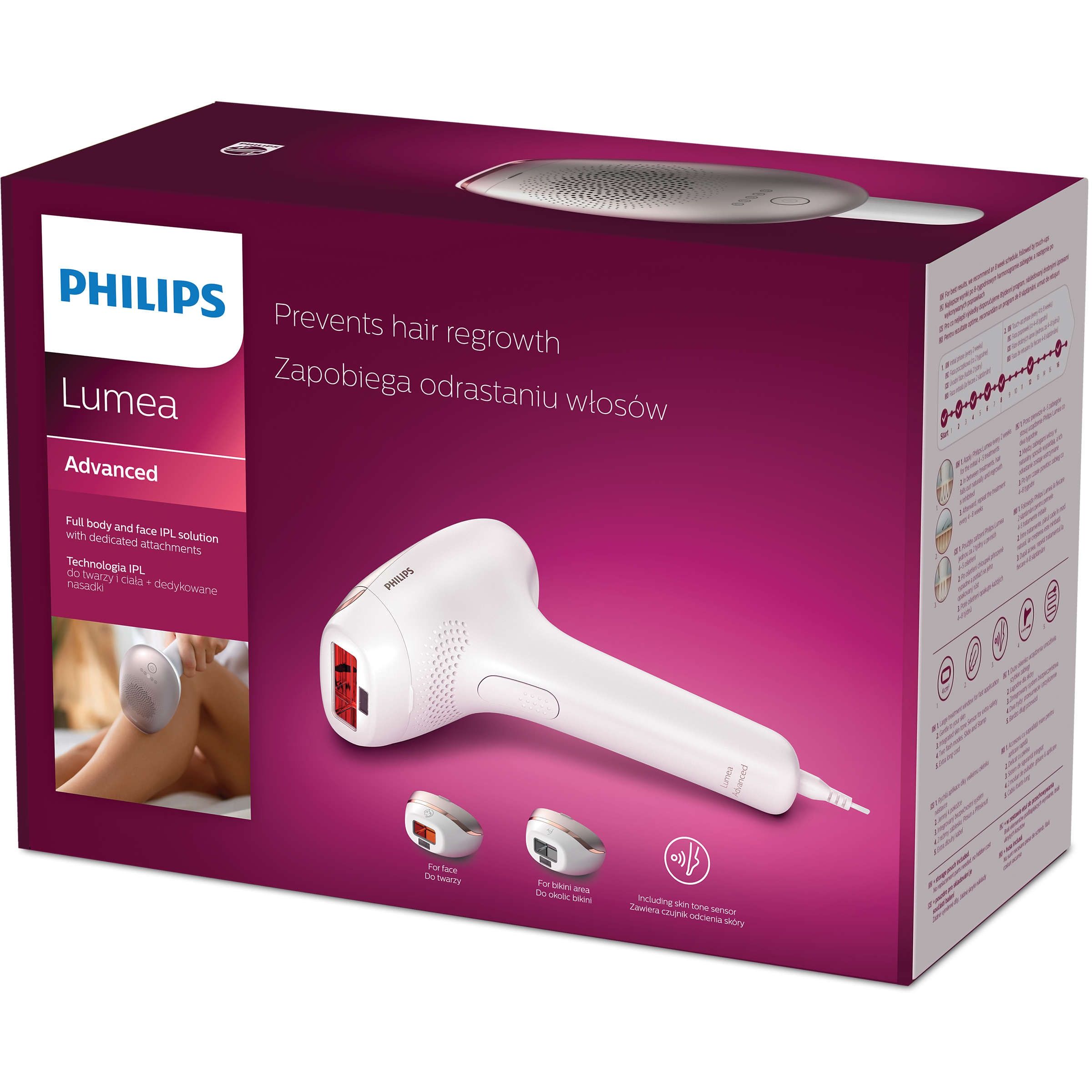 Tehnologie IPL profesională la domiciliu, dezvoltată cu ajutorul dermatologilor. IPL înseamnă lumină intens pulsată. Philips Lumea aplică pulsaţii delicate de lumină la rădăcina firului de păr, punând foliculul într-o fază de repaus. Drept urmare, cantitatea de păr de pe corp se reduce în mod gradual. Repetarea tratamentului îţi lasă pielea frumoasă şi fără păr, fină la atingere. Tratamentul de prevenire a creşterii părului este sigur şi delicat, chiar şi în zonele sensibile. Philips Lumea este testat clinic şi dezvoltat cu ajutorul dermatologilor pentru un tratament uşor şi eficient, în confortul propriei locuinţe.