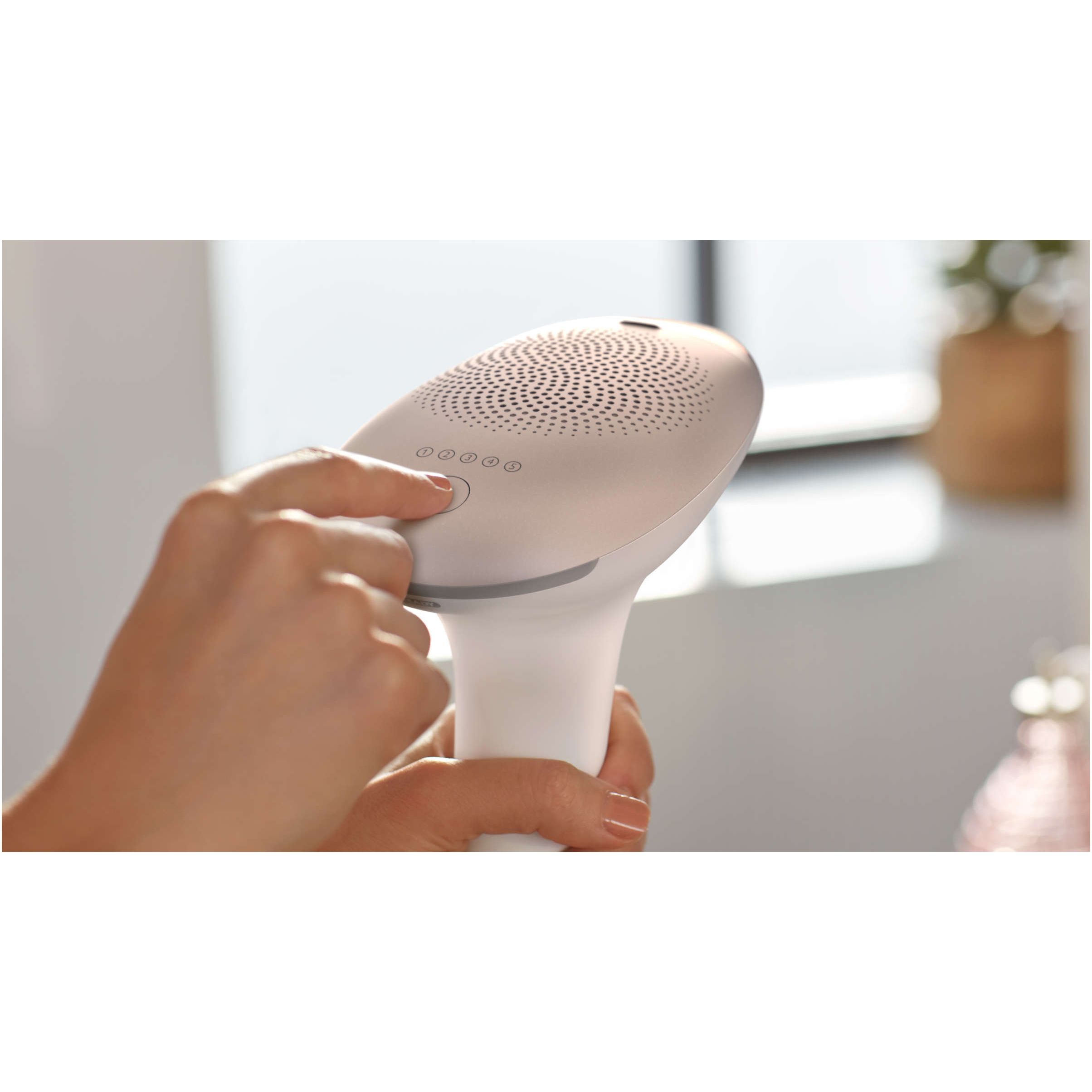 Senzor integrat de nuanţă a pielii. Pentru siguranţă, senzorul integrat pentru nuanţa pielii măsoară nuanţa pielii tratate la începutul fiecărei şedinţe şi ocazional în timpul şedinţei. Dacă detectează o nuanţă de piele prea închisă pentru acest produs, senzorul opreşte automat emiterea de impulsuri.