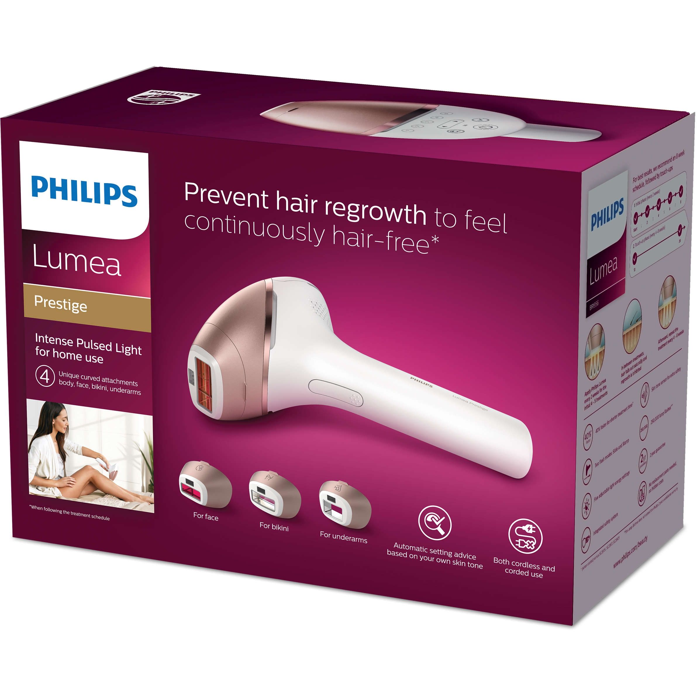 Adecvat pentru o largă varietate de tipuri de păr şi de piele. Philips Lumea Prestige acţionează eficient, uşor şi sigur pe o gamă largă de tipuri de păr şi de piele. Funcţionează pe păr natural blond închis, şaten şi negru şi pe tonuri de piele variind de la piele foarte albă la cafeniu închis. Ca şi alte tratamente bazate pe IPL, Philips Lumea nu poate fi utilizat pentru a trata păr alb/grizonat, blond deschis şi roşcat şi nu este potrivit pentru piele foarte închisă la culoare. Acest lucru se datorează contrastului înalt necesar între pigmentul culorii părului şi pigmentul nuanţei pielii.