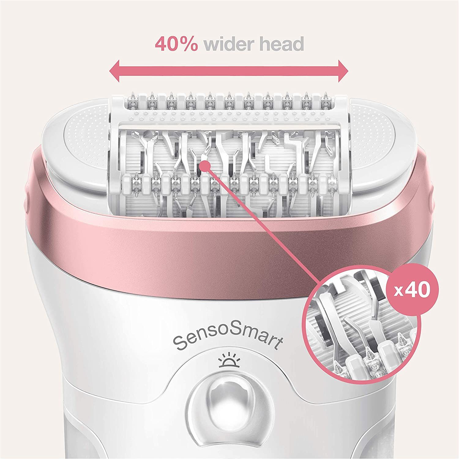 Fără efort. Epilator pentru femei cu cap lat şi pivotant pentru îndepărtarea părului mai uşor şi mai eficient.