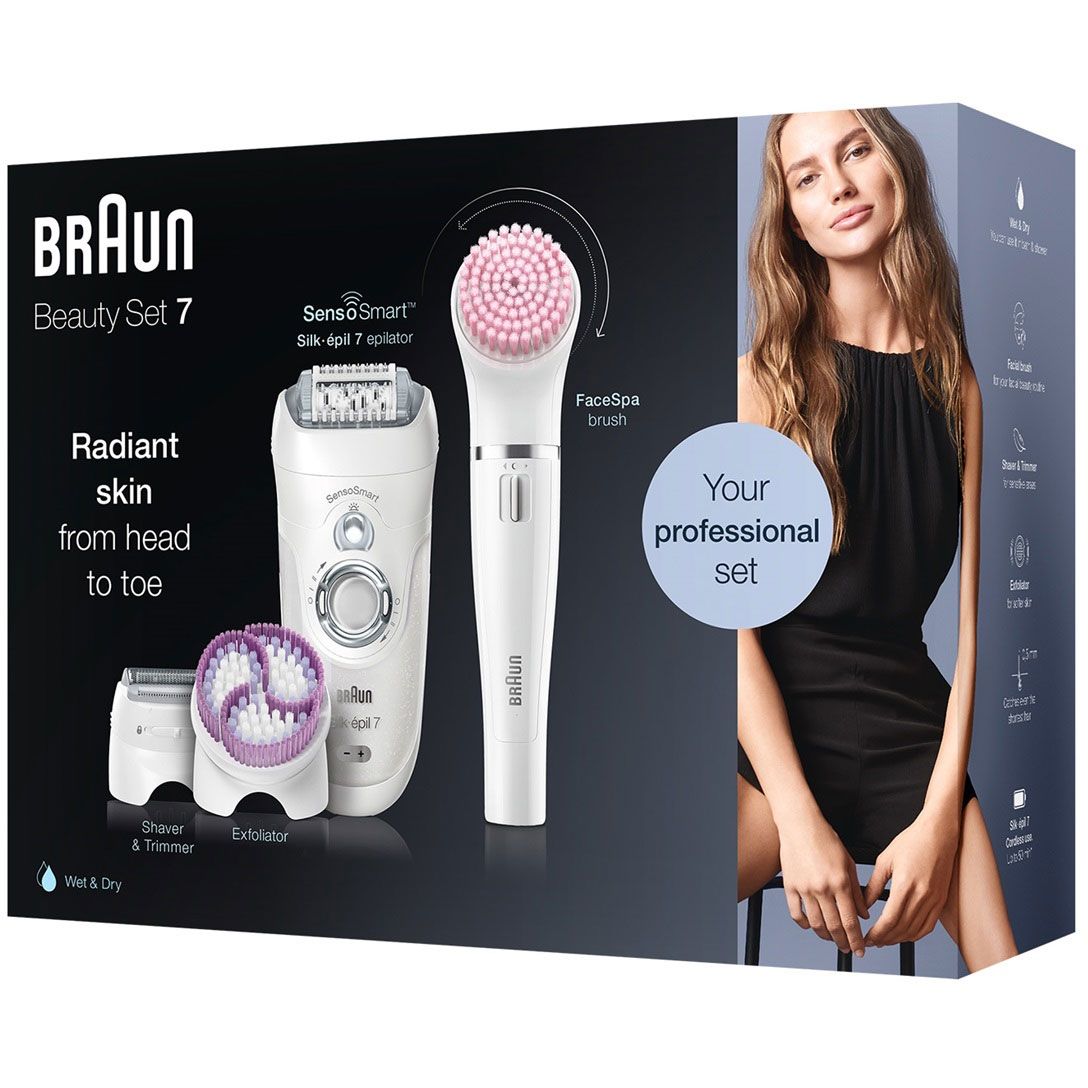 Beauty set. Setul profesional Braun pentru piele netedă pe tot corpul. Pentru utilizare pe față, picioare și zone sensibile. Urmează regimul nostru pentru a obține o piele impecabilă: exfoliază, epilează, rade, curăță. Epilator Braun Silk-épil.