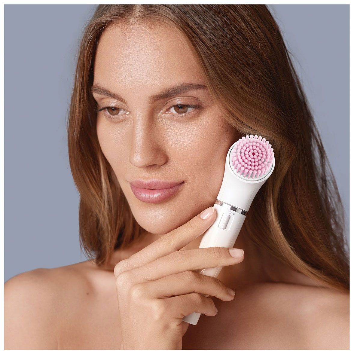 Perie de curățare facială. Oscilează delicat pentru a desprinde și îndepărta machiajul, sebumul și impuritățile de până la 6 ori mai eficient decât în cazul curățării manuale.