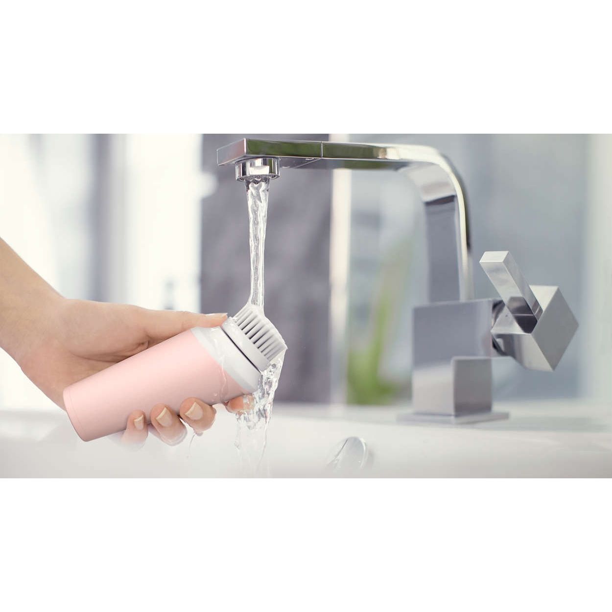 Tehnologie de curăţare cu rotaţie. Mişcarea de rotaţie îndepărtează rapid, dar delicat impurităţile prin periere, lăsând pielea curăţată mai în profunzime.