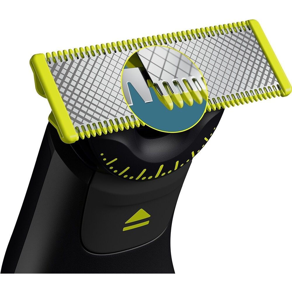 Philips OneBlade este un nou aparat de stilizat hibrid revoluţionar, care poate tunde, rade şi crea linii şi margini curate, pe orice lungime de păr. Sistemul său dublu de protecţie – un strat de alunecare combinat cu vârfuri rotunjite – face bărbieritul mai uşor şi mai confortabil. Tehnologia să de bărbierire dispune de un dispozitiv de tăiere cu mişcare rapidă, care se deplasează de până la 12.000 de ori pe minut şi trece prin orice lungime de păr.