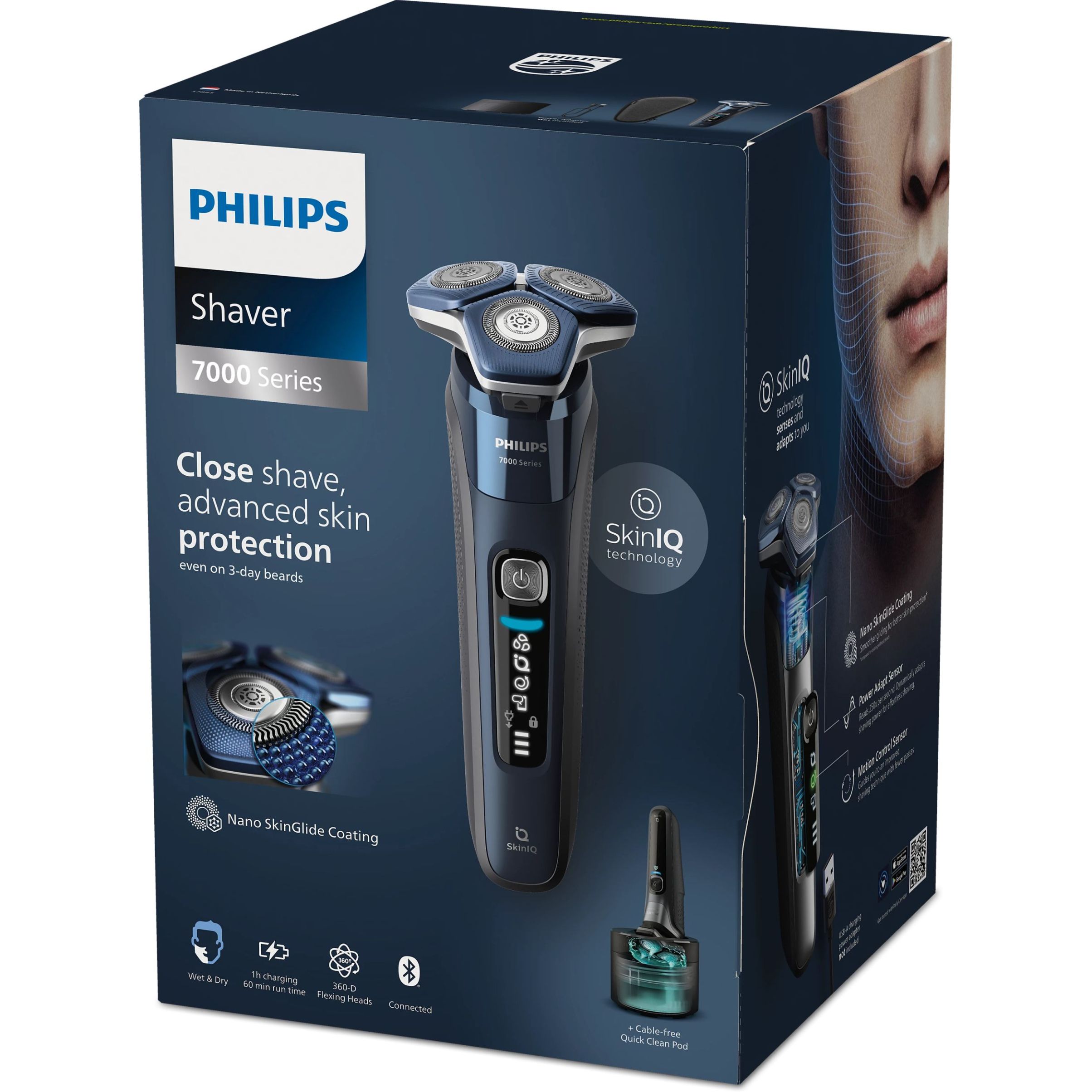 Aparat de bărbierit electric Philips Shaver Seria 7000 S7885/50, Umed și uscat, Adriatic Blue
