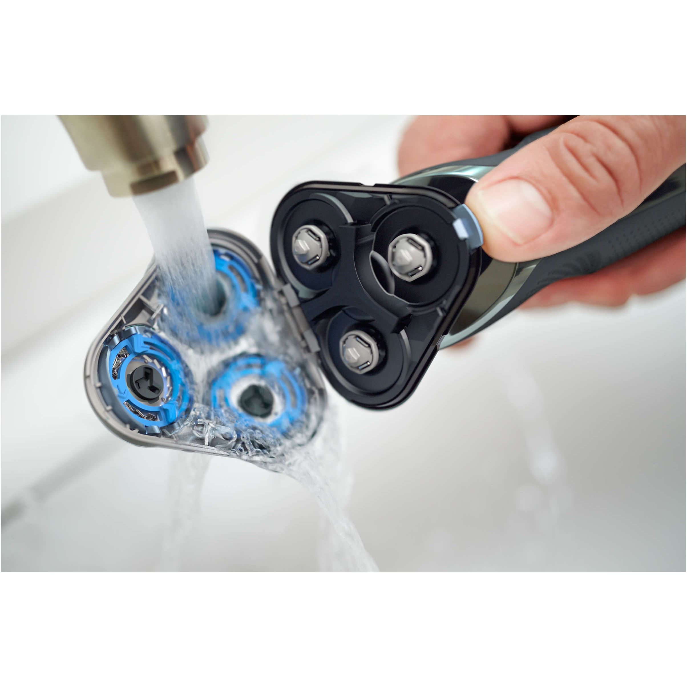 Aparatul de bărbierit poate fi clătit uşor la robinet. Doar deschide capul aparatului de bărbierit pentru a-l clăti complet sub robinet.