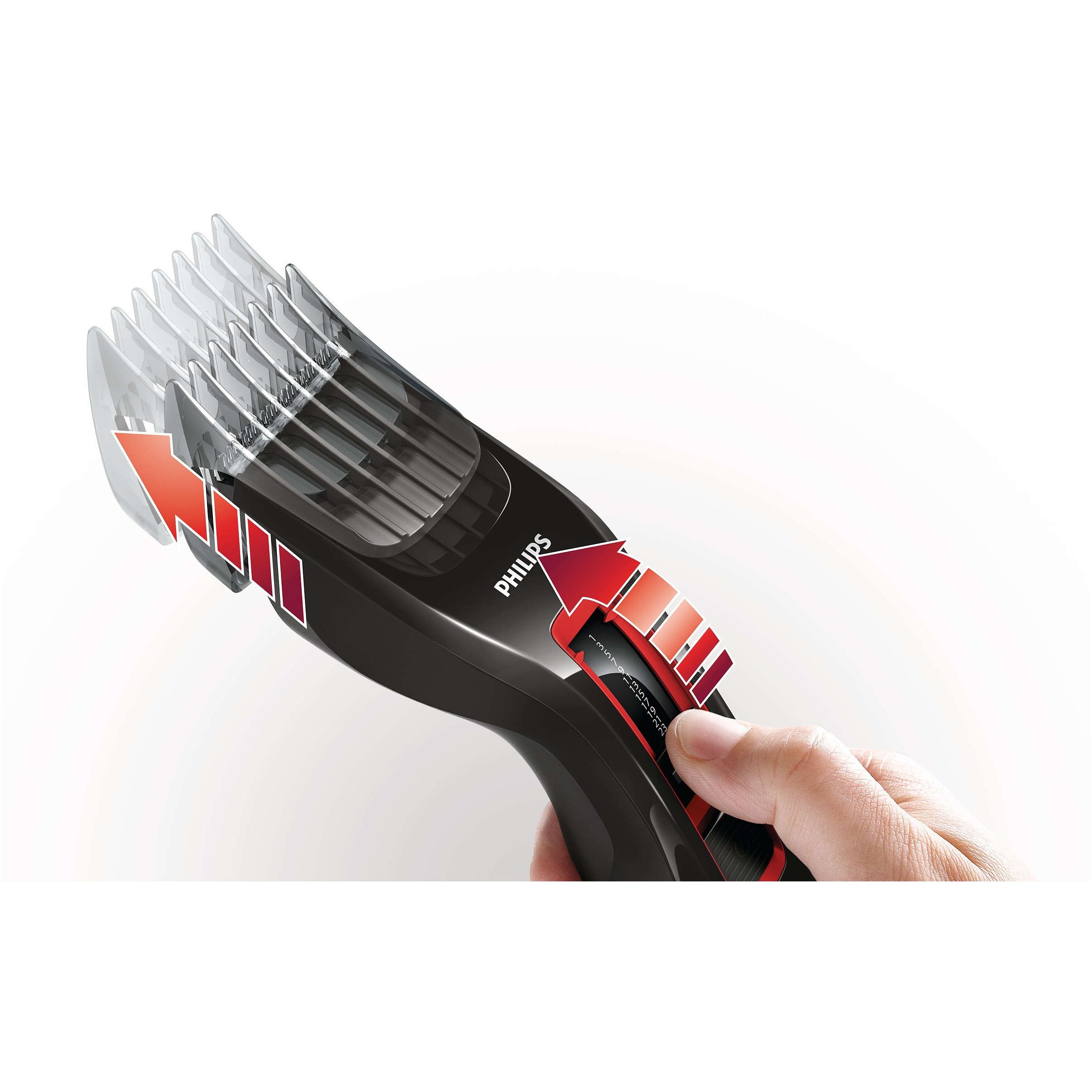 13 setări pentru lungime uşor de selectat şi blocat: 0,5 la 23 mm. Pur şi simplu selectează şi blochează lungimea pe care o doreşti cu ajutorul pieptenelui reglabil, care dispune de 12 setări pentru lungime blocabile de la 1 la 23 mm, cu fix 2 mm între fiecare lungime. Sau îl poţi utiliza fără pieptene, pentru un tuns scurt de 0,5 mm.
