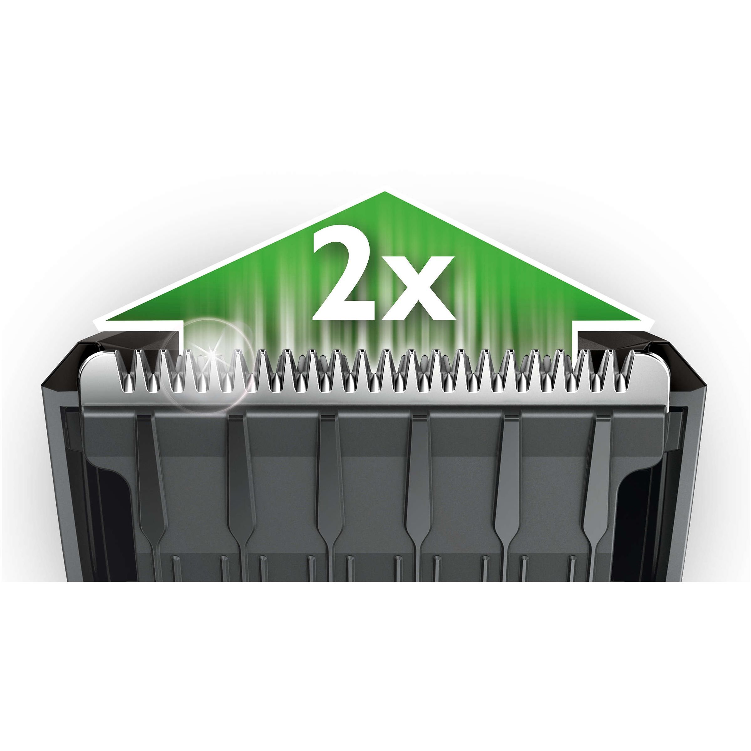 Cap de radere cu ascuţire dublă şi frecare redusă. Potrivit pentru orice tip de păr, graţie tehnologiei avansate DualCut, care combină un cap de radere cu ascuţire dublă şi un nivel redus de frecare. Capul de radere inovator de tăiere este conceput să funcţioneze neîntrerupt, tăind părul de două ori mai rapid decât aparatele de tuns obişnuite de la Philips.*