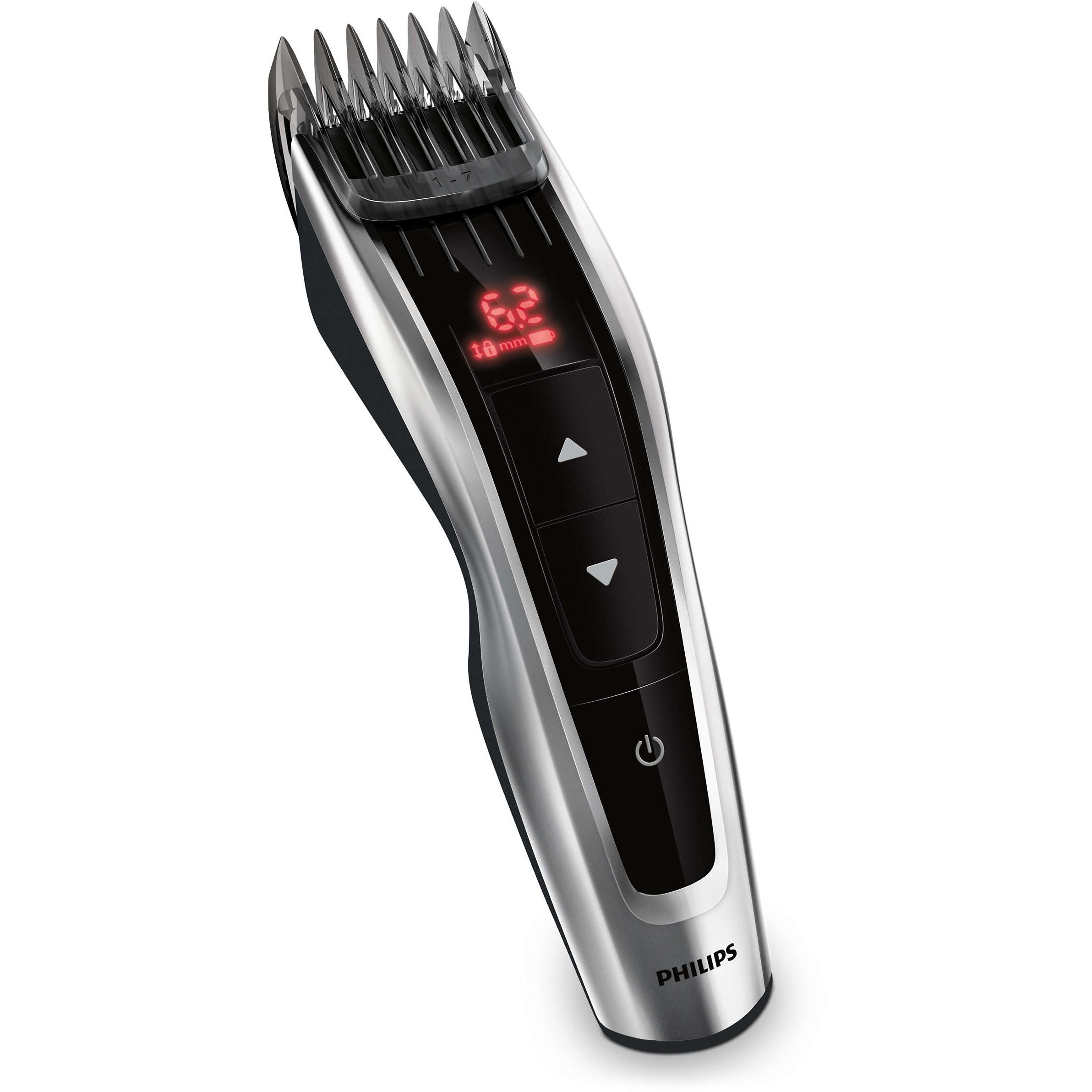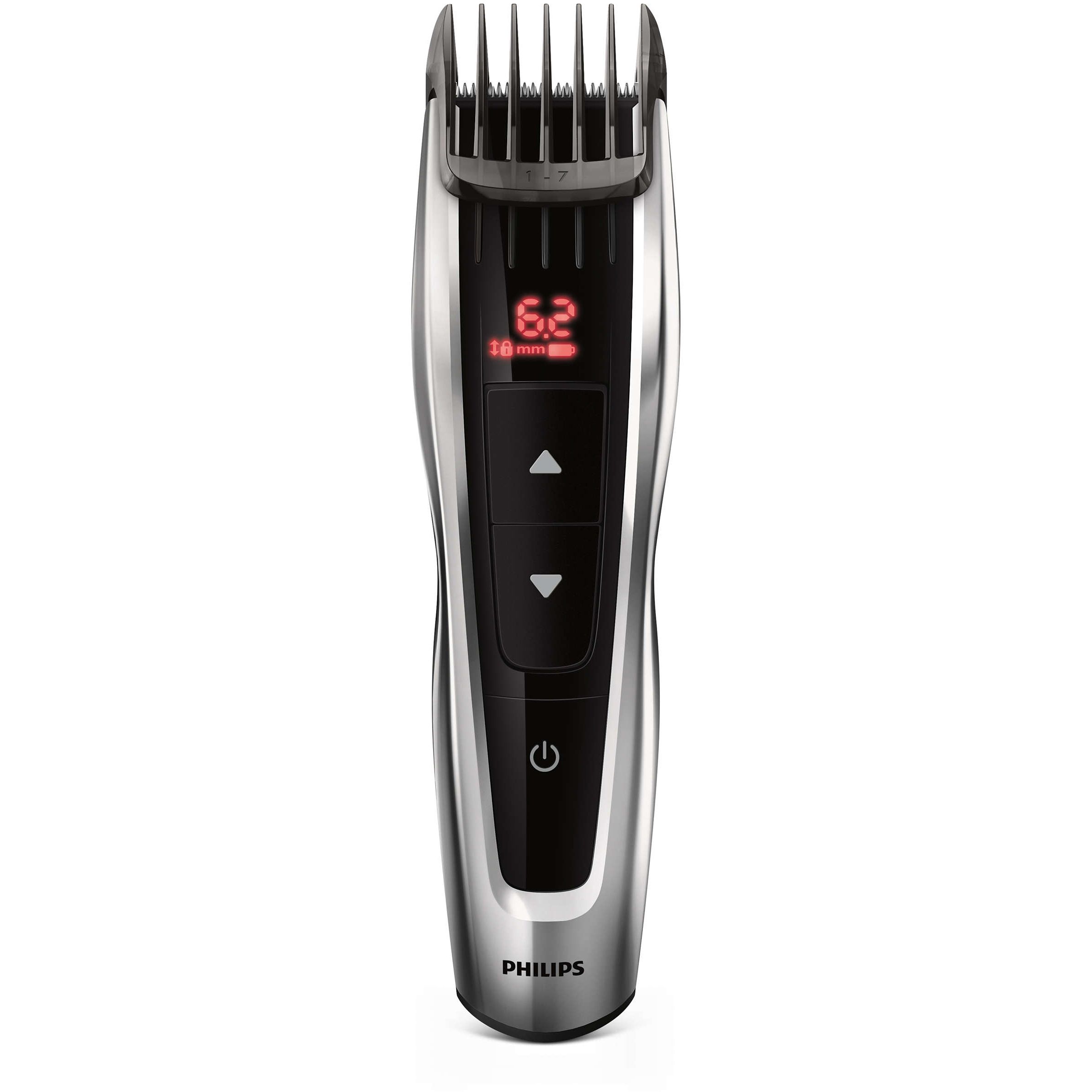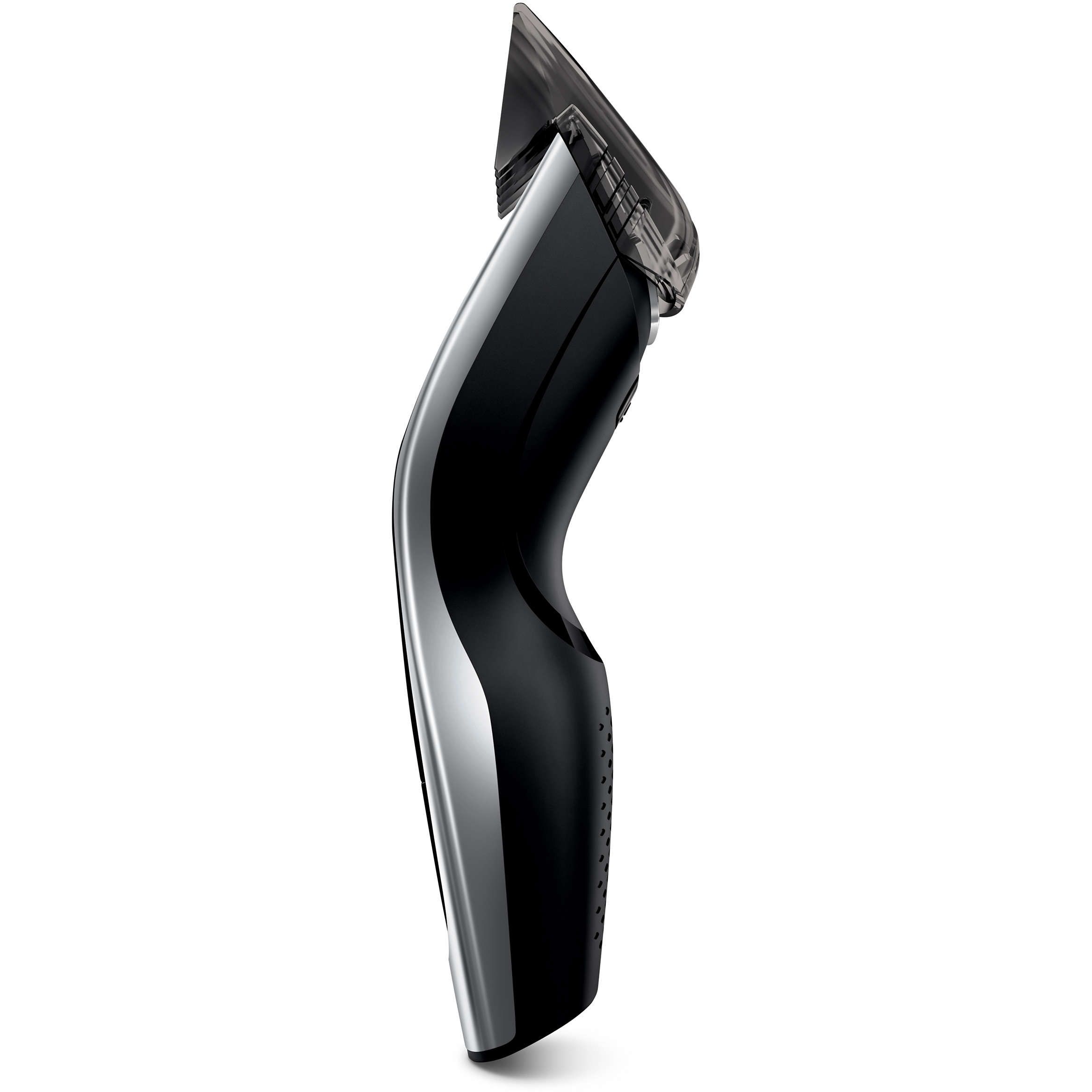 60 setări pentru lungime uşor de selectat şi blocat: 0,5 la 42 mm. Utilizează butoanele de control pentru a selecta cu precizie şi bloca lungimea pe care o doreşti, cu mai mult de 60 setări de lungime. Utilizează pieptenele pentru a tunde cu precizie la intervale de 0,2 mm, între 1 şi 7 mm, şi de 1 mm între 7 şi 42 mm. Sau poţi să îl utilizezi fără pieptene pentru un tuns scurt de 0,5 mm.