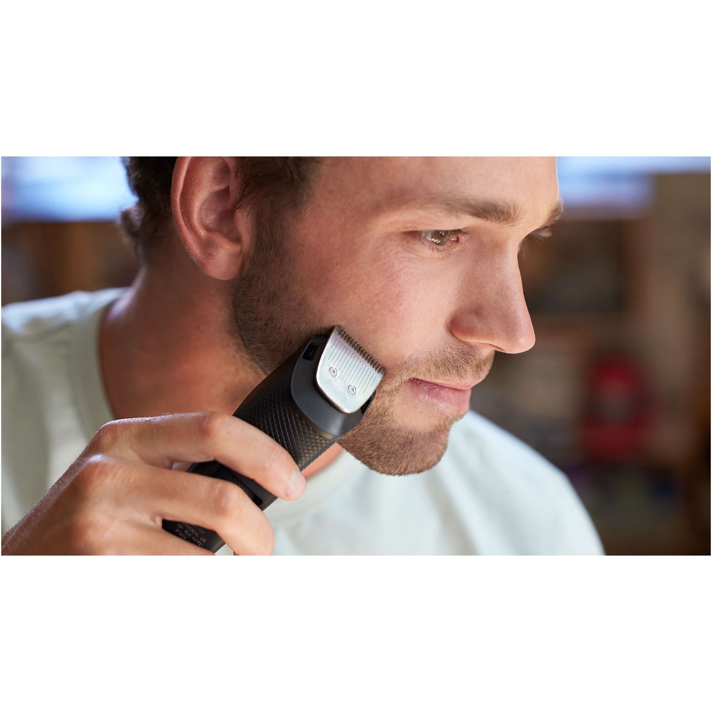 Sistemul de ridicare şi tundere ghidează firele de păr pentru un bărbierit uniform. Tunde-ţi barba cu noul nostru sistem de ridicare şi tundere: pieptenele ridică şi ghidează firele de păr la nivelul lamelor pentru un bărbierit uniform.