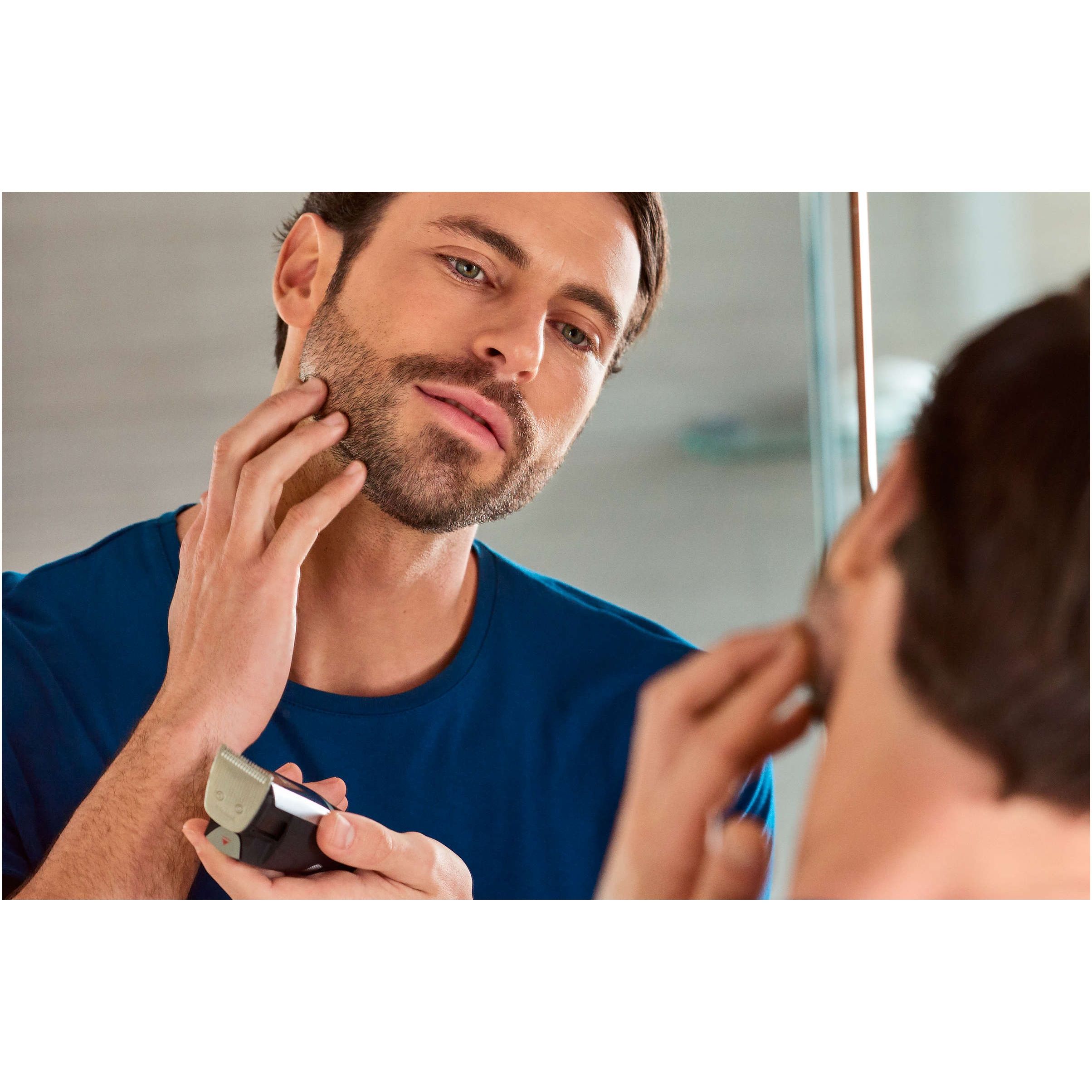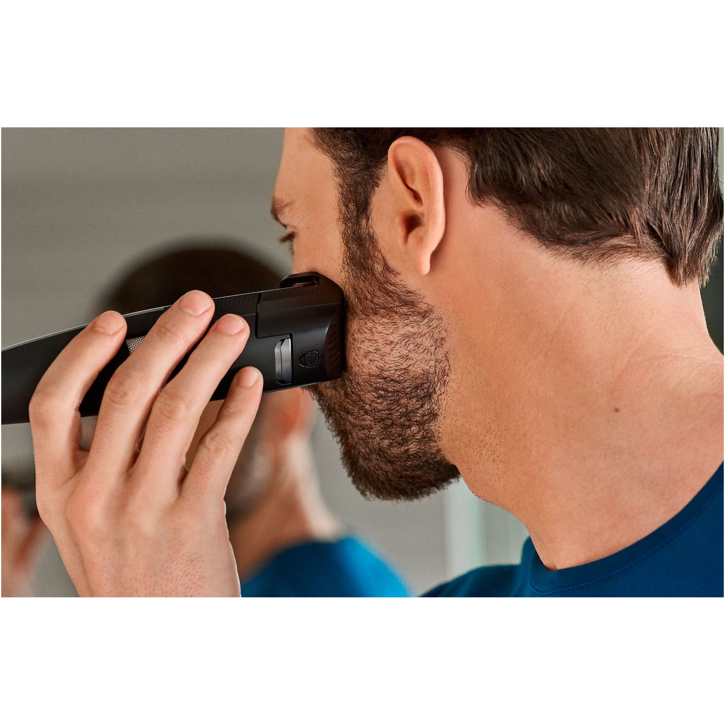 Aparat de tuns pentru detalii, pentru contururi şi detalii faciale perfecte. Finisează-ţi stilul. Ataşează printr-un clic aparatul de tuns pentru detalii pentru a-ţi defini contururile şi detaliile bărbii sau mustăţii.