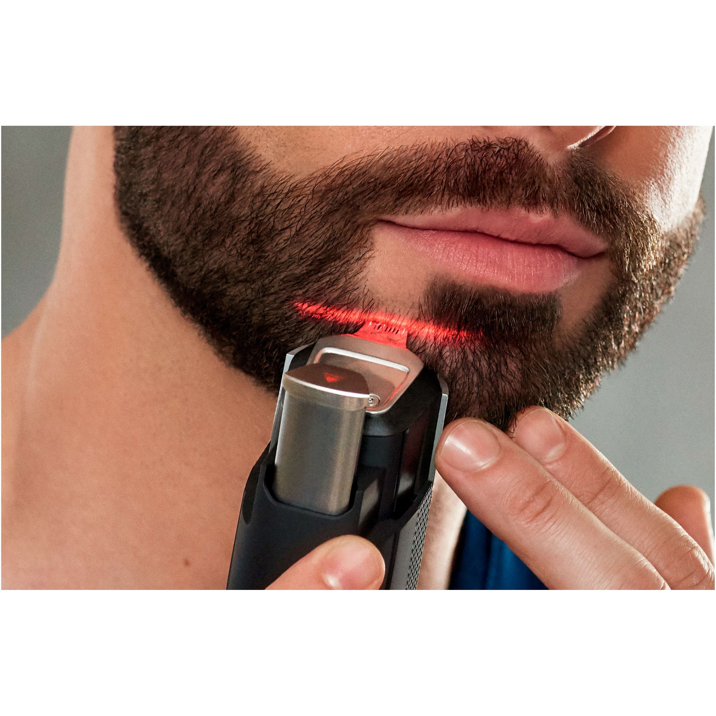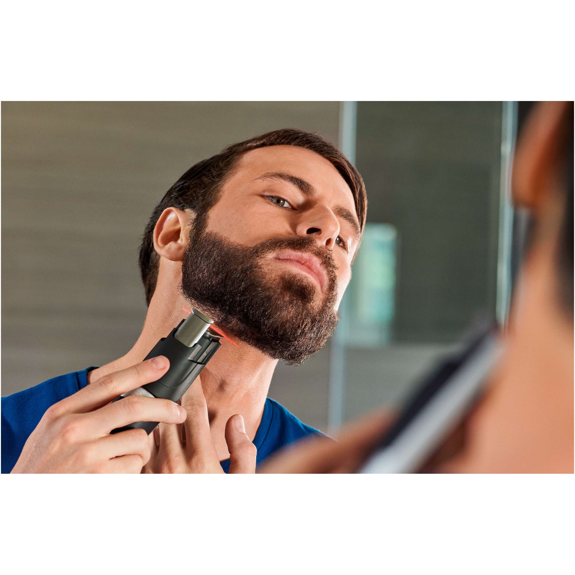 Ghidare cu laser pentru tuns precis şi simetric, de fiecare dată. Perfecţionează-ţi barba cu sistemul nostru exclusiv de ghidare cu laser. Urmăreşte linia roşie de lumină pentru a-ţi tunde barba precis şi simetric pe ambele părţi ale feţei.
