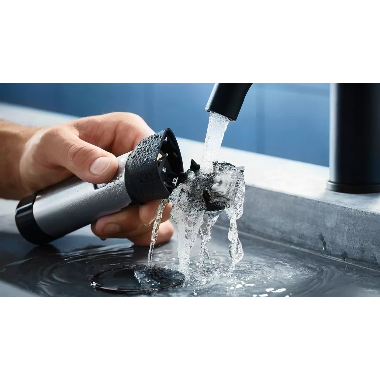 Capul cu deschidere automată facilitează curăţarea la robinet. Doar deschide capul şi clăteşte la robinet pentru curăţare.