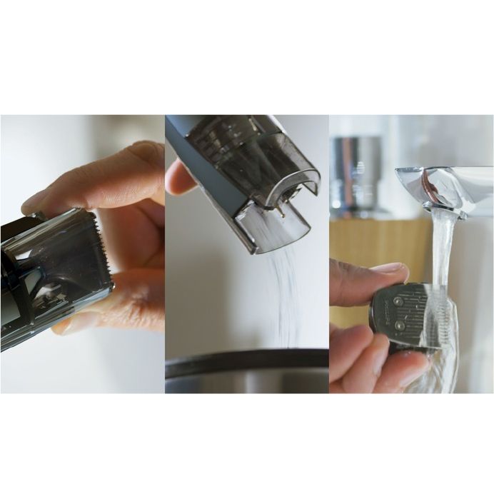 Curăţare uşoară. Demontează lamele şi clăteşte-le sub jet de apă pentru o curăţare uşoară. Usucă-l înainte de a-l pune înapoi în aparat. Goleşte camera de păr prin periere.