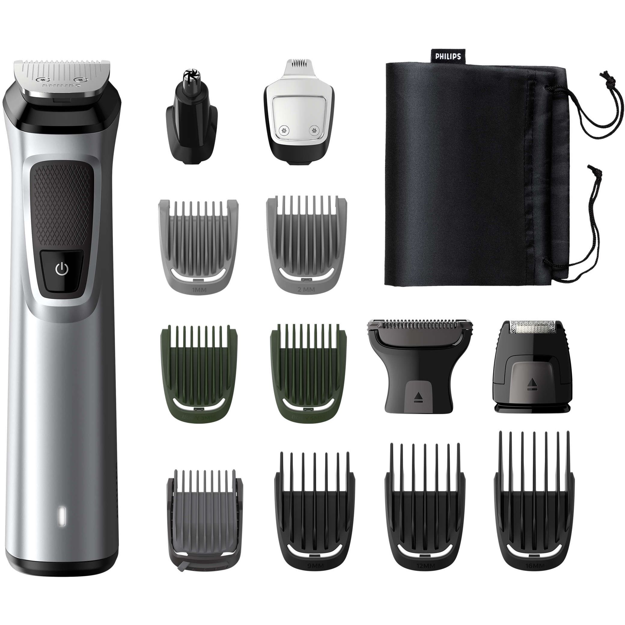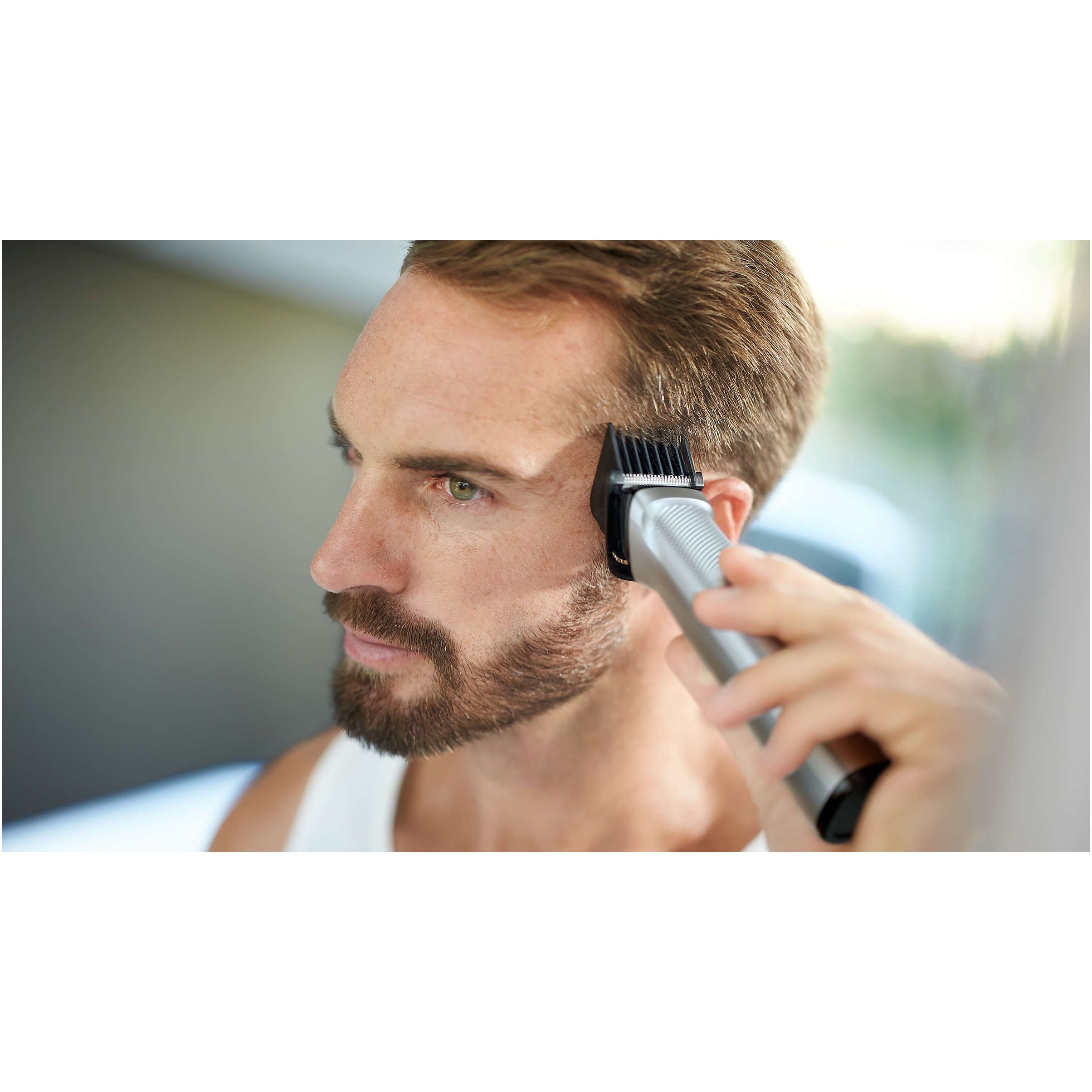8 piepteni pentru tunderea părului de pe faţă, cap şi corp. 2 piepteni pentru aspect nebărbierit (1,2 mm), 1 pieptene ajustabil pentru barbă (3-7 mm), 3 piepteni pentru păr (9,12,16 mm) şi 2 piepteni pentru corp (3,5 mm).