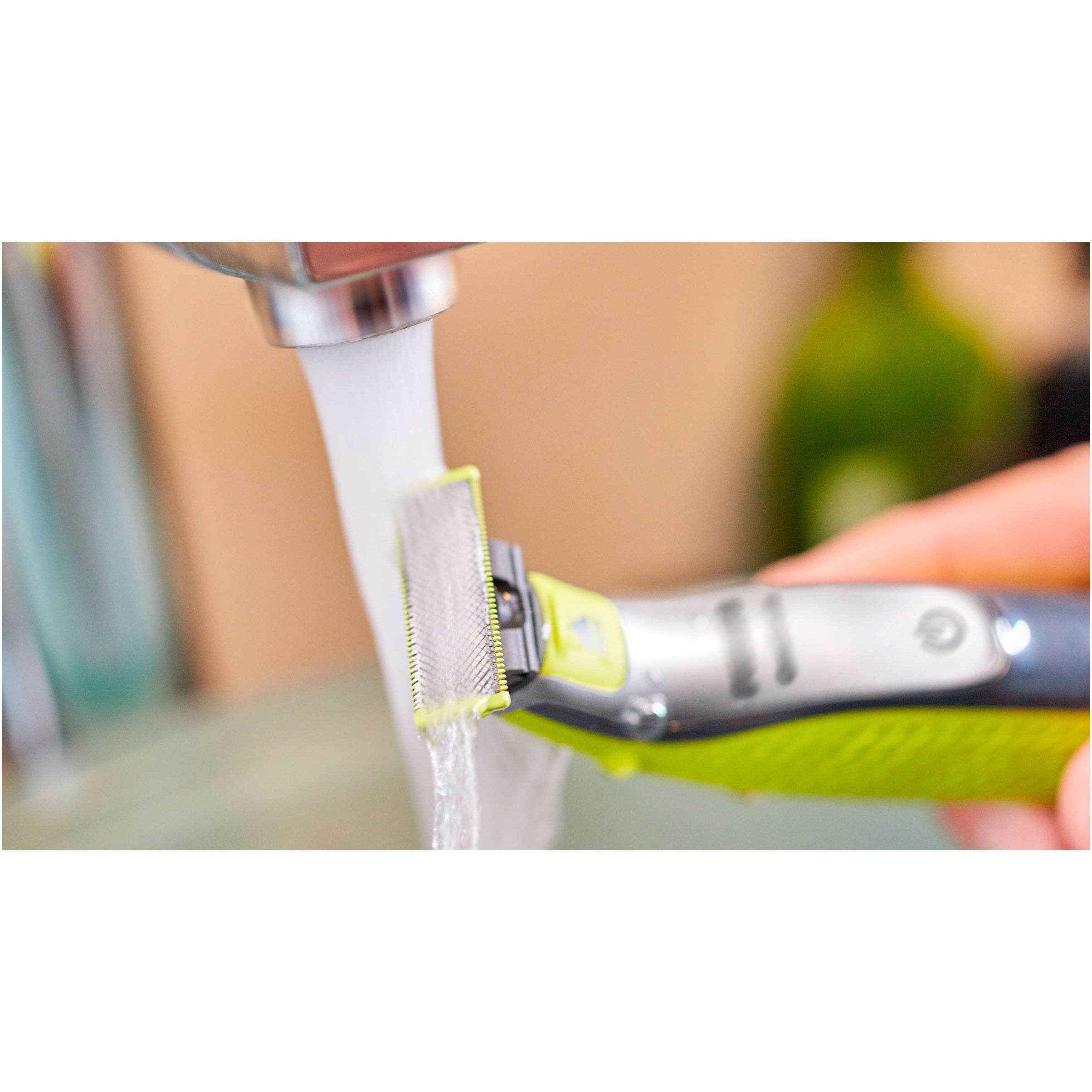 Umed şi uscat. OneBlade este rezistent la apă, aşadar este uşor de curăţat: nu trebuie decât să-l clăteşti la robinet. De asemenea, te poţi bărbieri cu sau fără spumă – cum preferi.