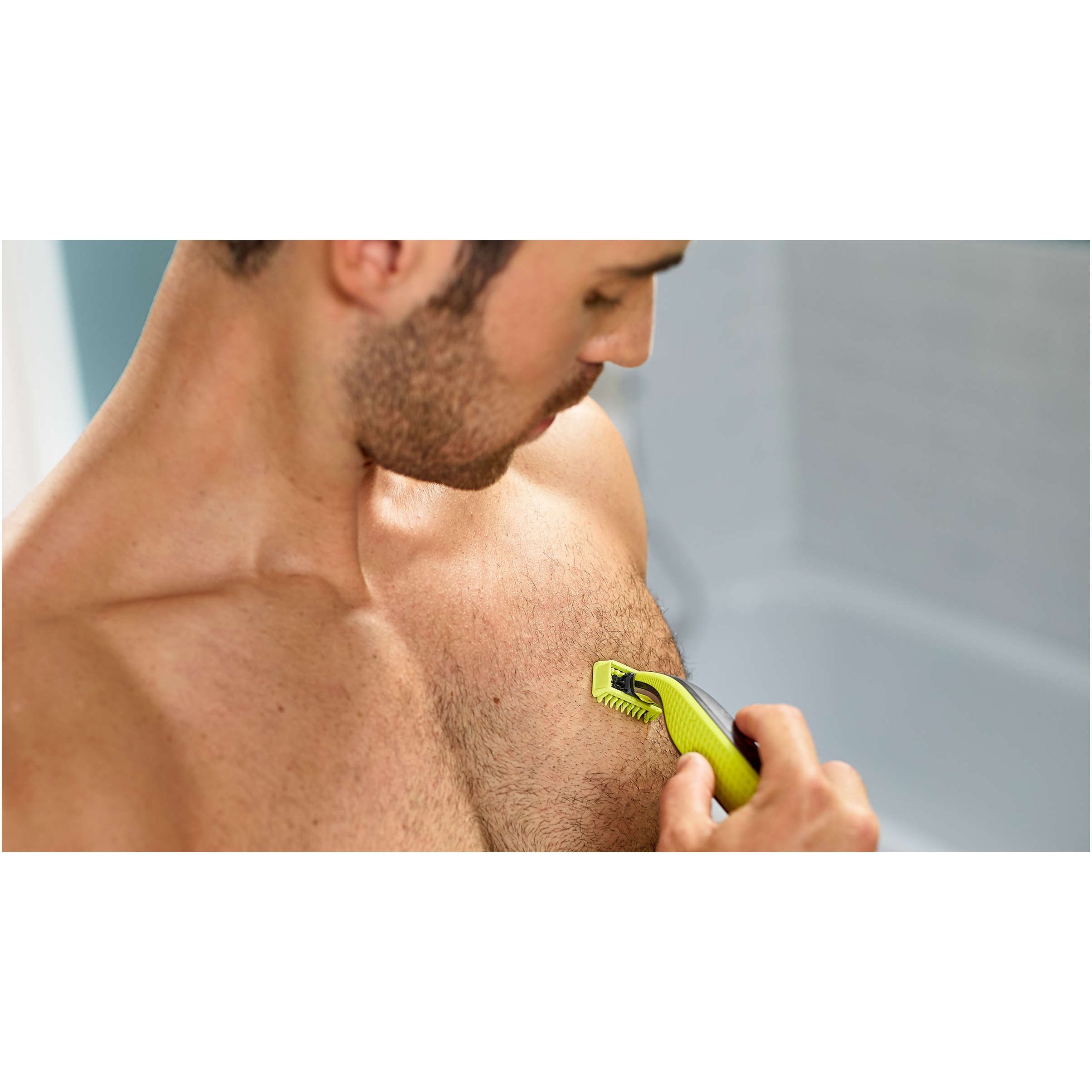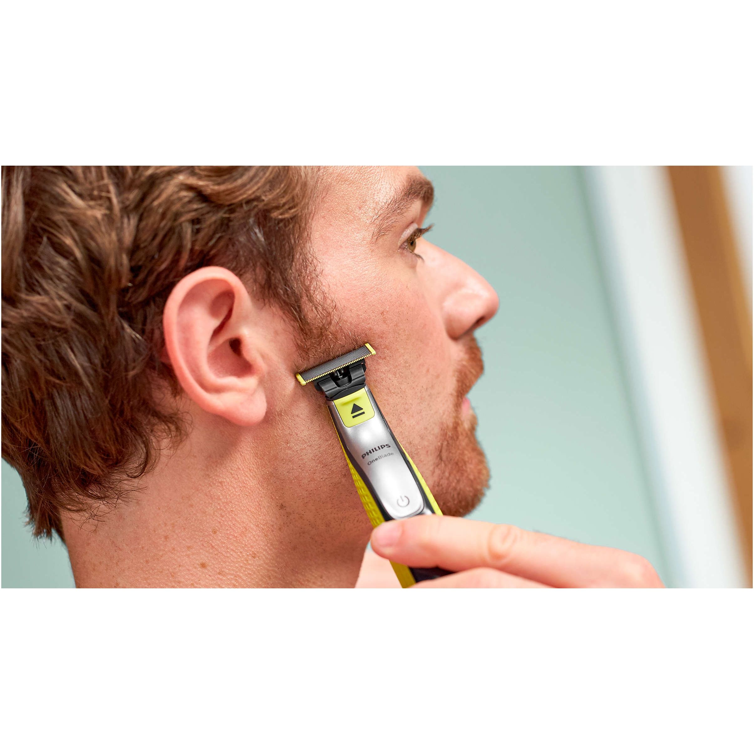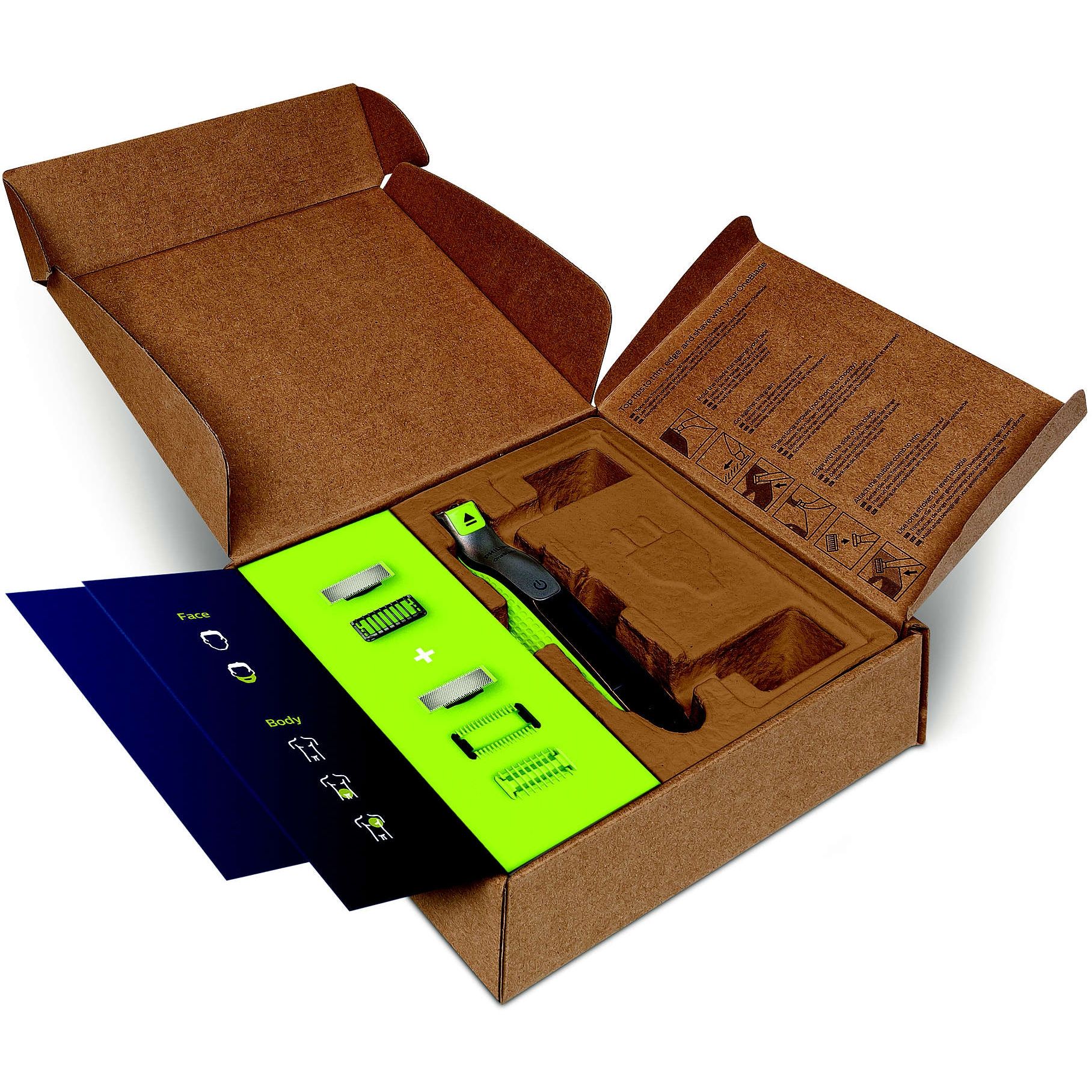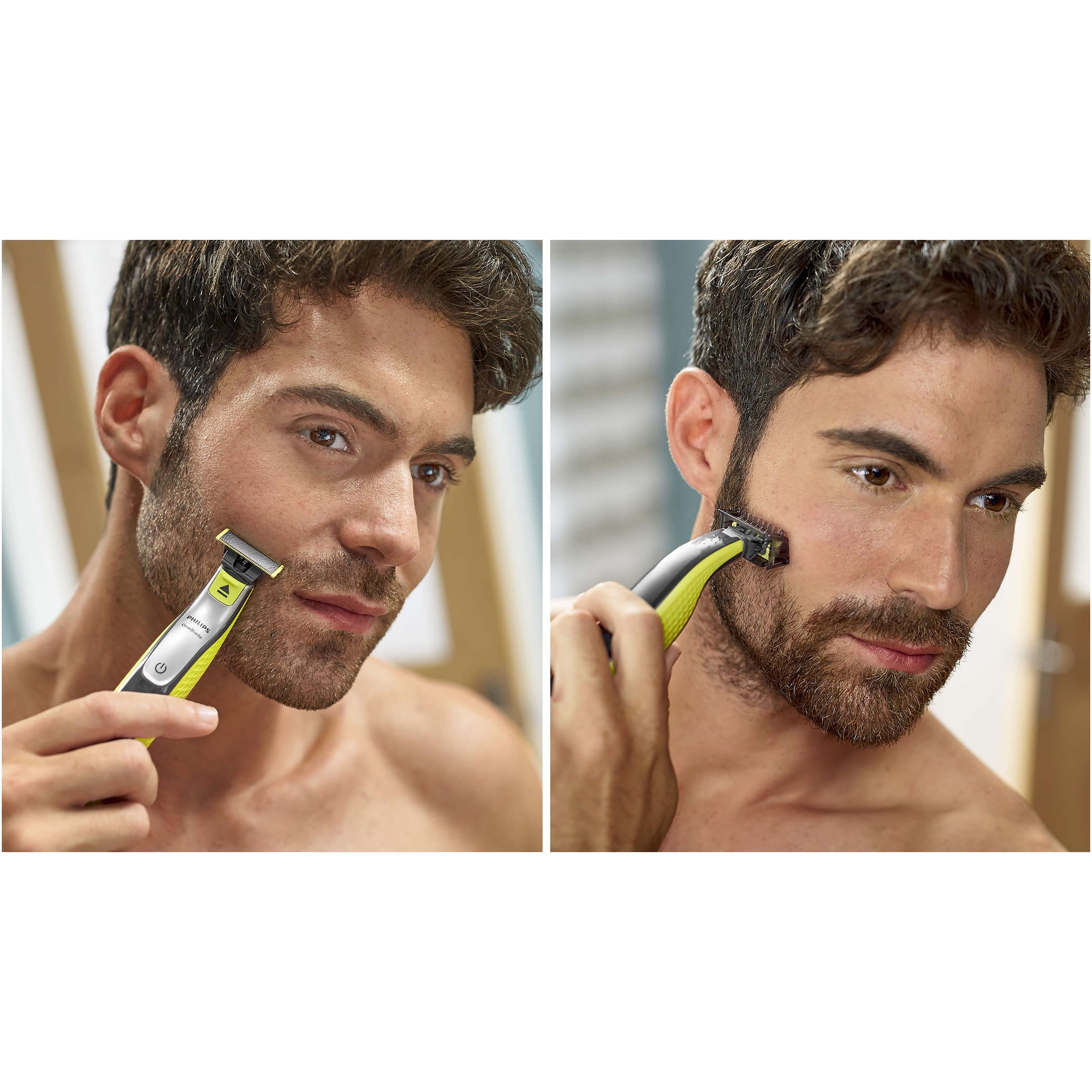 Tehnologie OneBlade unică. Philips OneBlade are o tehnologie nouă şi revoluţionară concepută pentru stilizarea părului facial şi îngrijire corporală. Poate să tundă, să contureze şi să bărbierească orice lungime de păr. Sistemul său dublu de protecţie – un strat de alunecare combinat cu vârfuri rotunjite – asigură un bărbierit mai uşor şi mai confortabil. Tehnologia sa de bărbierire include un dispozitiv de tăiere cu mişcări rapide (200 pe secundă), astfel încât este eficientă chiar şi pe firele mai lungi.