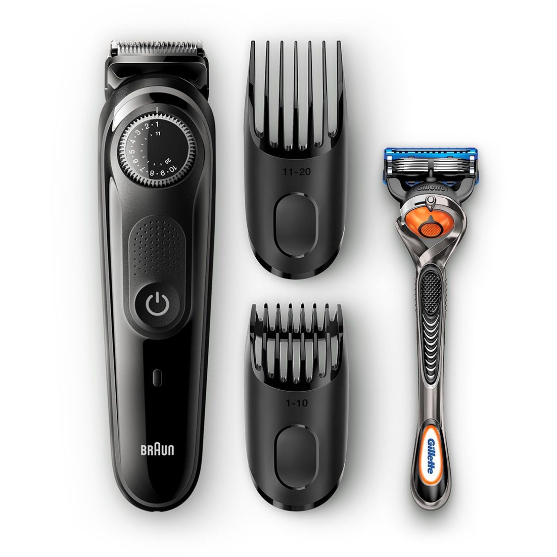 Îngrijirea bărbii. 2 piepteni ajută la întreținerea bărbilor scurte și lungi. Butonul rotativ de precizie taie firele de păr la lungimea dorită în trepte de 0,5 mm.