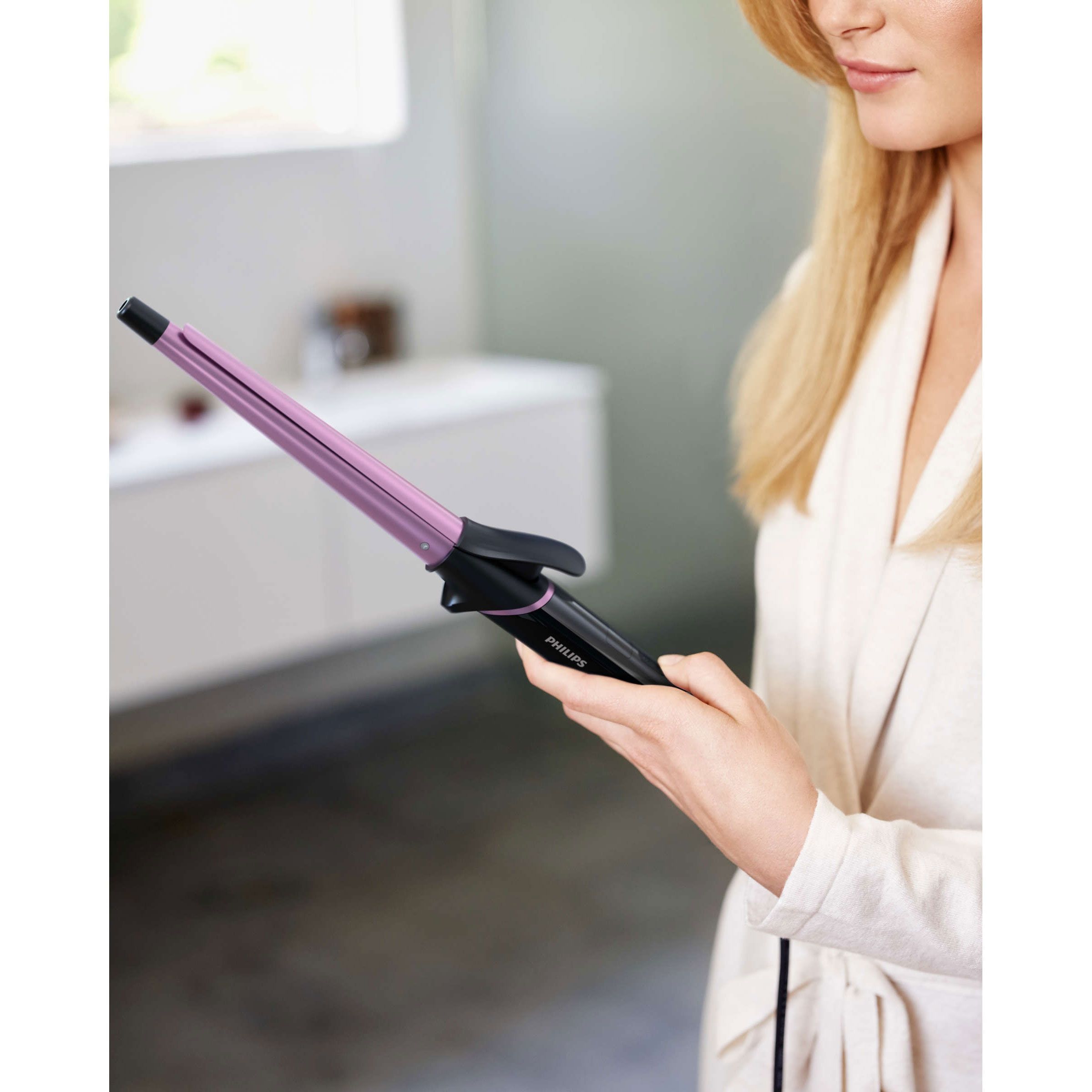 Tehnologie SplitStop pentru prevenirea despicării vârfurilor. Secretul nostru pentru prevenirea absolută a despicării vârfurilor este noua tehnologie SplitStop. Este o combinaţie unică de performanţă optimă a încălzirii şi de niveluri reduse de frecare, pentru a menţine sănătatea părului tău de la rădăcină până la vârf. Nu apar schimbări bruşte de temperatură, ceea ce asigură distribuirea constantă şi uniformă a nivelului optim de căldură de-a lungul barei în timpul coafării. Bara este acoperită cu un strat ceramic fin, pentru reducerea tracţiunii pe şuviţele de păr. Conturează bucle perfecte, cu vârfuri mai sănătoase, pline de o viaţă nouă.