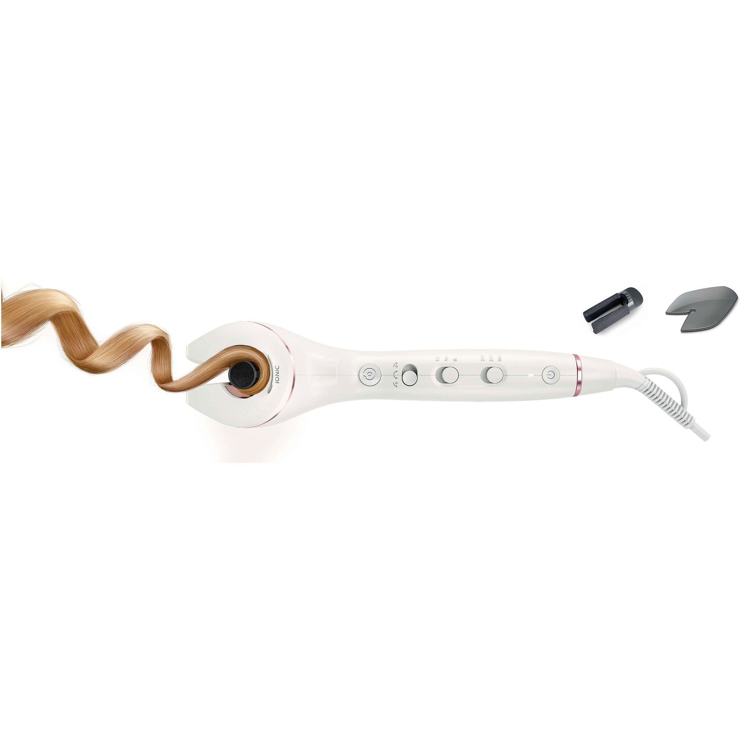 3 direcţii de ondulare reglabile. 3 direcţii de ondulare reglabile (stânga, dreapta şi automat) adaugă mai multă creativitate rutinei de ondulare. Bucle pe dreapta, bucle pe stânga - astfel încât să poţi ondula fiecare parte cu simetrie perfectă - sau ondulare automată pentru o combinaţie de bucle pe dreapta şi pe stânga, pentru un aspect complet natural.