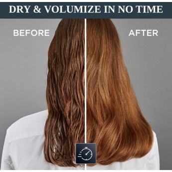 Acțiune triplă de uscare - ridică firele de par de la rădăcini în timp ce le coafează și le oferă cu până la 2x mai mult volum natural* - și cap perie ovală de dimensiuni XL pentru rezultate rapide. Ionii emiși de către generator oferă cu până la 80% mai multă strălucire și reduc efectul de electrizare cu 77%**.