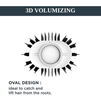 Peria în formă ovală stilizează părul în timp ce-l usucă, oferindu-i un plus de volum de la rădăcini la vârfuri.