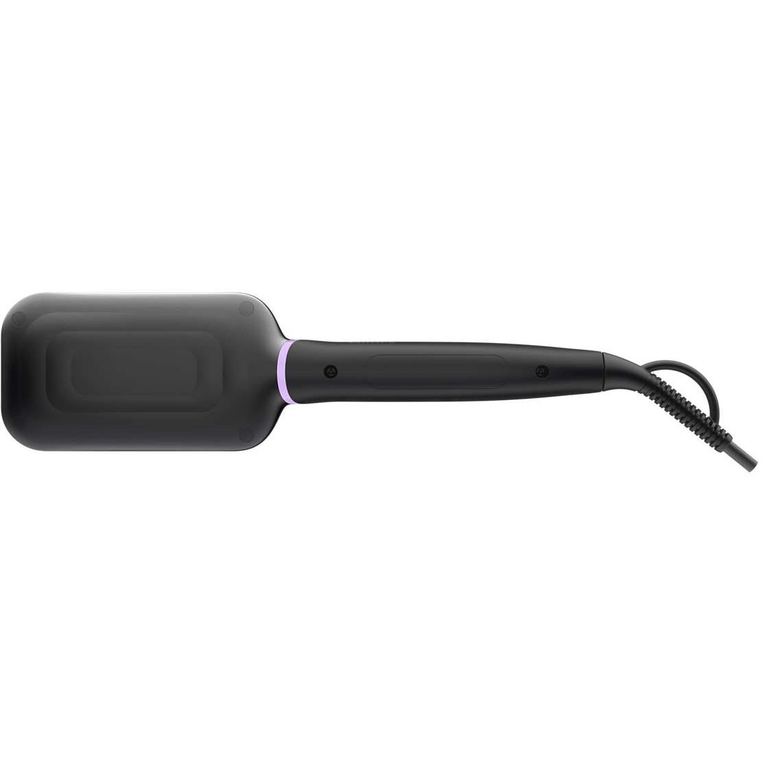 Design cu peri tripli. Designul cu peri tripli asigură descurcarea delicată şi îndreptarea părului, protejând totodată scalpul de căldură. Perie mare în formă de paleta. Design în formă de paletă pentru a îndrepta mai mult păr dintr-o mişcare.