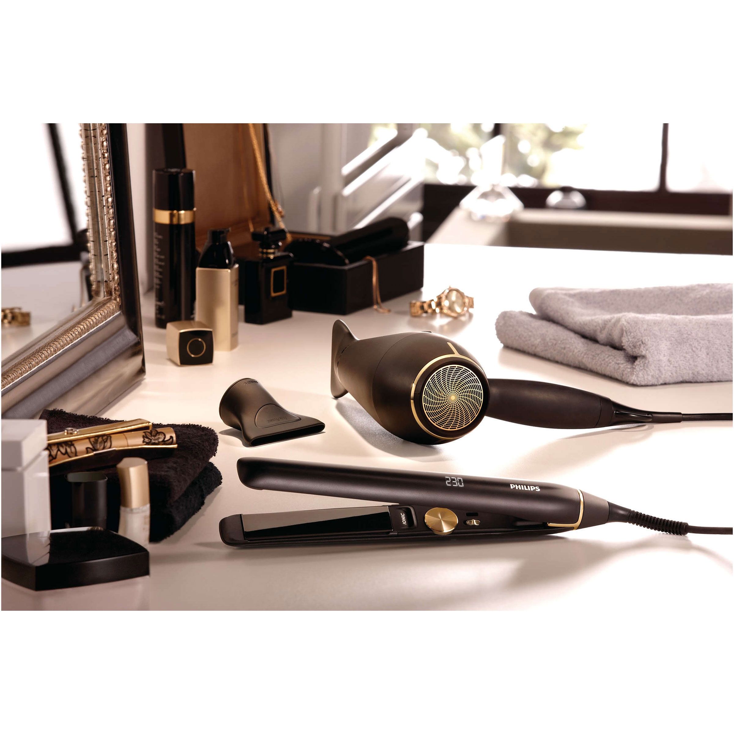 Mai multă îngrijire prin tratamentul cu ioni, pentru păr strălucitor şi drept. Oferă-i părului tău un plus de îngrijire cu tratament ionic. Ionii negativi elimină electricitatea statică, tratează părul şi netezesc cuticulele părului pentru a intensifica strălucirea acestuia. Rezultatul este un păr minunat de lucios, neted şi drept.