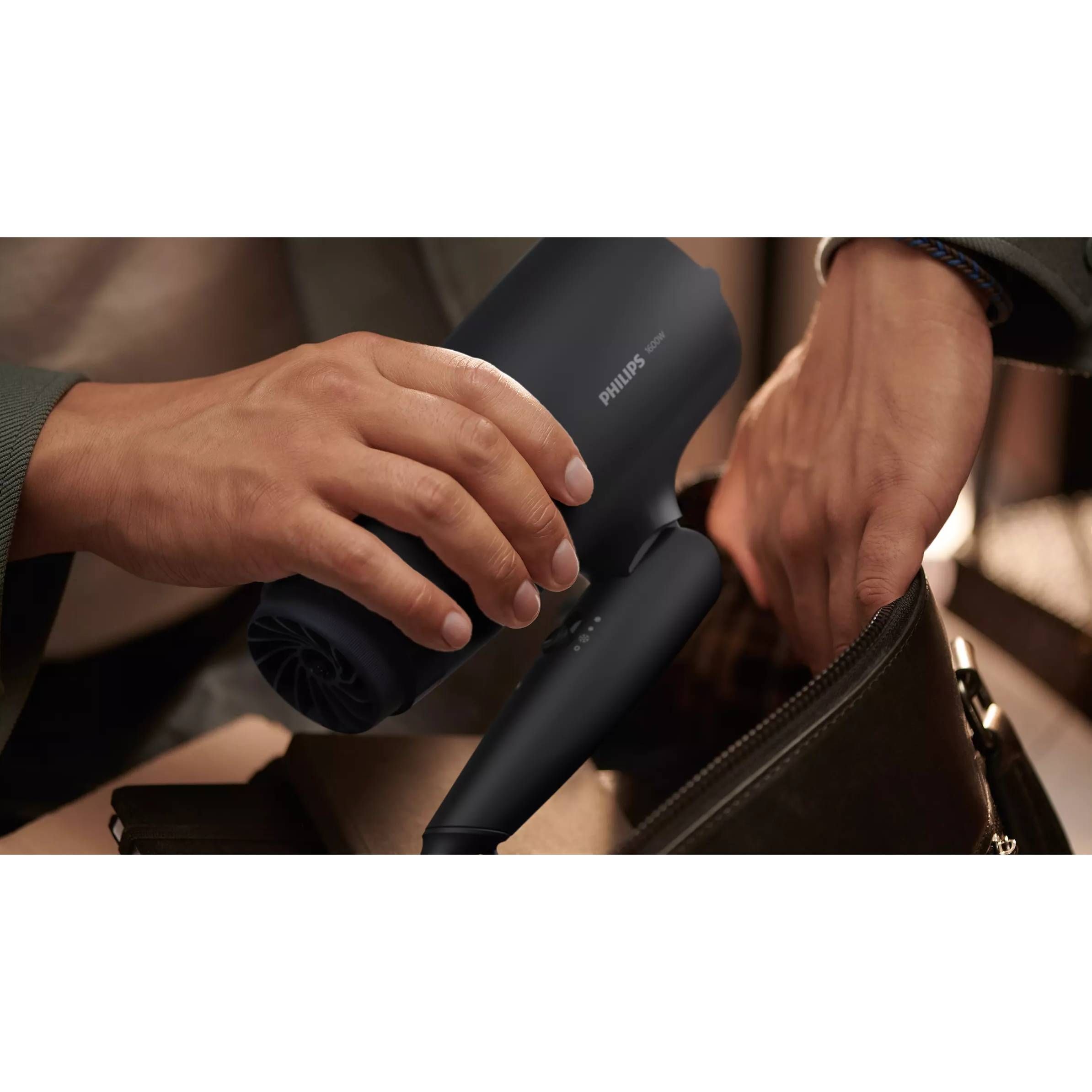 ►Mâner pliabil pentru depozitare uşoară. Designul compact, cu mâner pliabil îţi permite să împachetezi, să depozitezi uşor şi să iei cu tine uscătorul de păr, oriunde mergi.