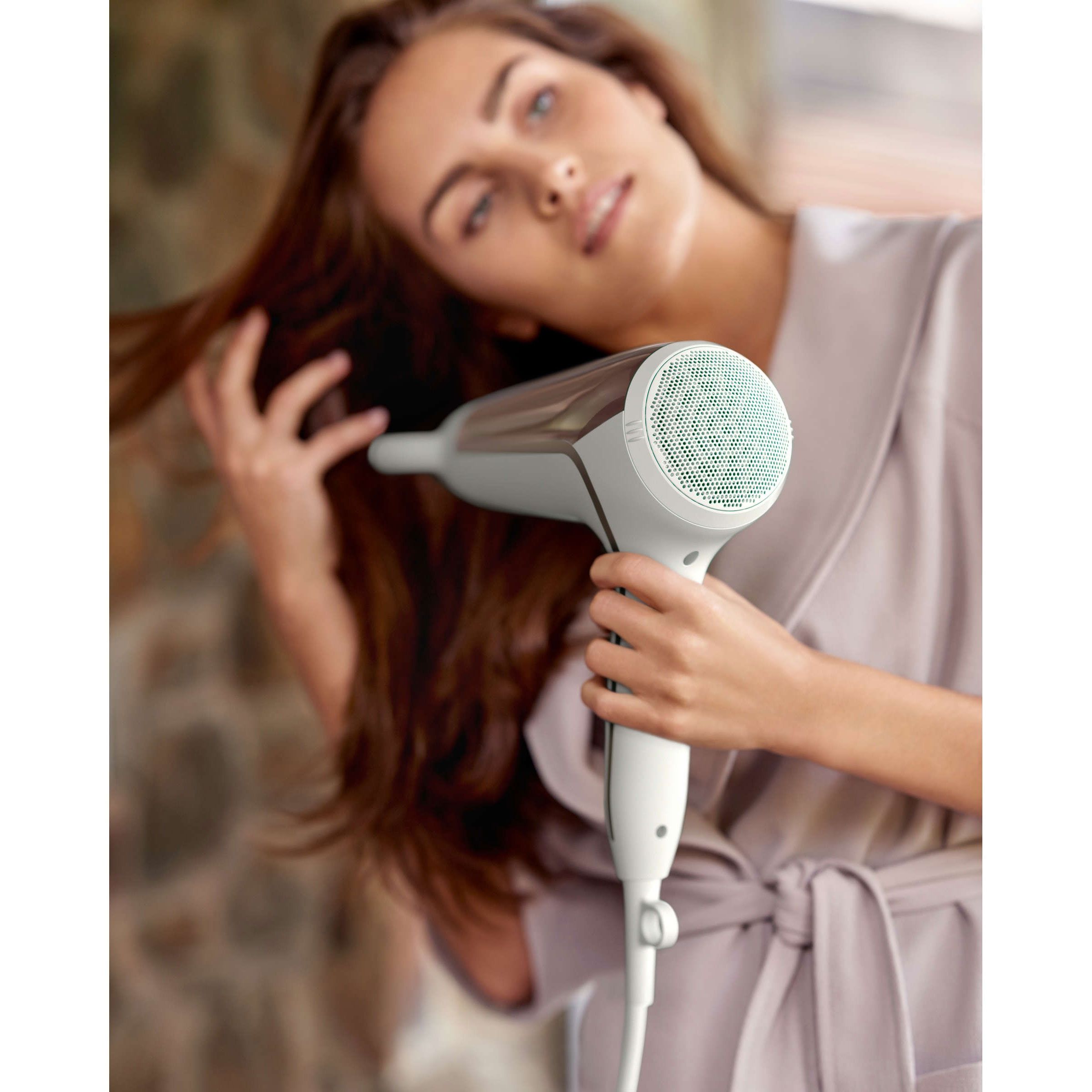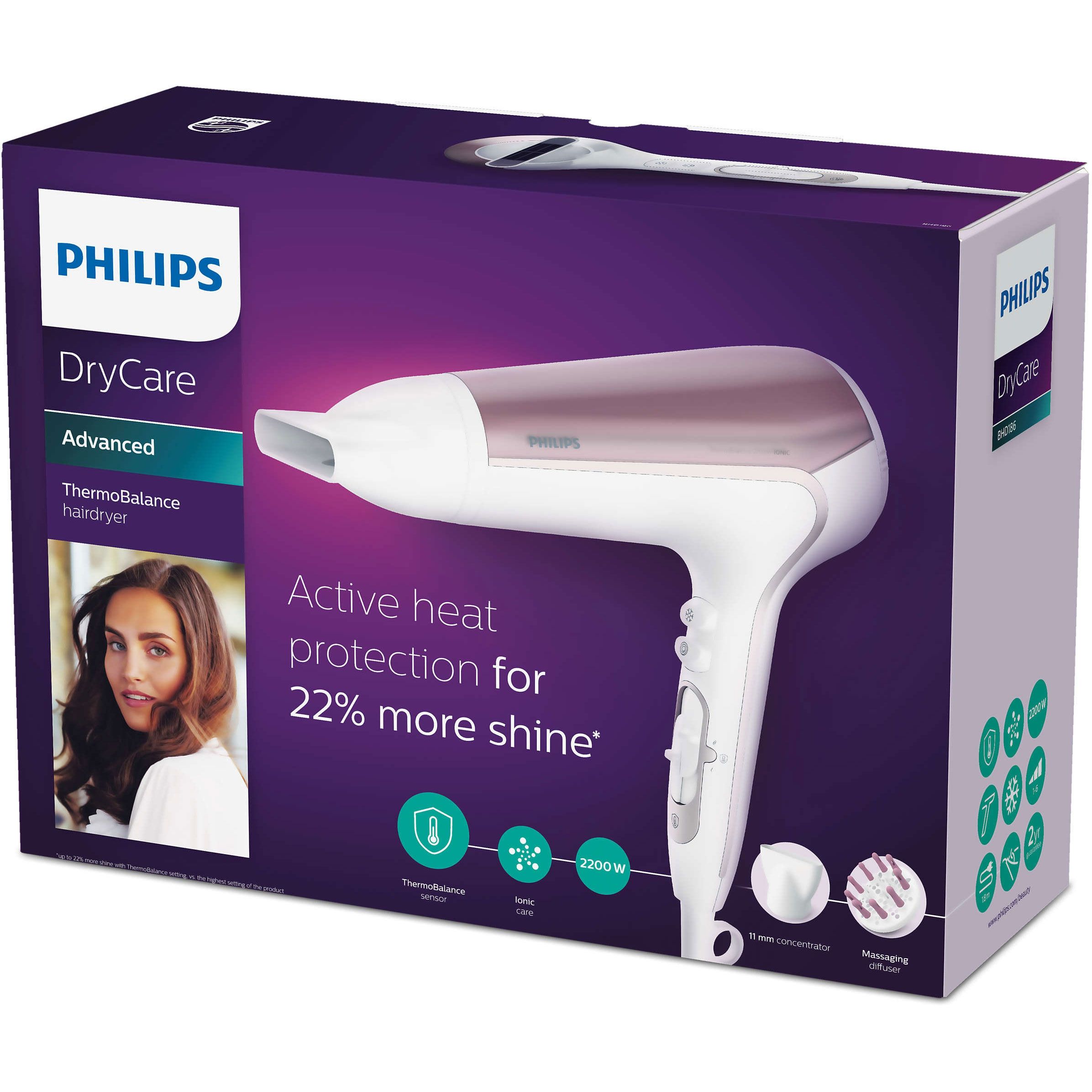 ThermoBalance oferă protecţie activă împotriva căldurii. ThermoBalance este o tehnologie inovatoare de la Philips care oferă părului protecţie inteligentă şi superioară. Senzorul diagnostichează continuu căldura aerului şi reglează constant temperatura pentru uscare rapidă şi sănătoasă. Atunci când senzorul ThermoBalance este activat, LED-ul este aprins. Poţi apoi să simţi schimbări de temperatură plăcute şi constante, împiedicând formarea de puncte fierbinţi care deteriorează părul. Părul şi pielea capului sunt protejate activ şi constant împotriva supraîncălzirii.