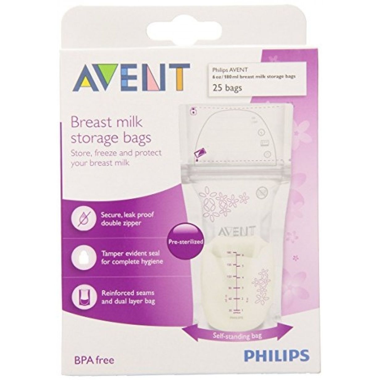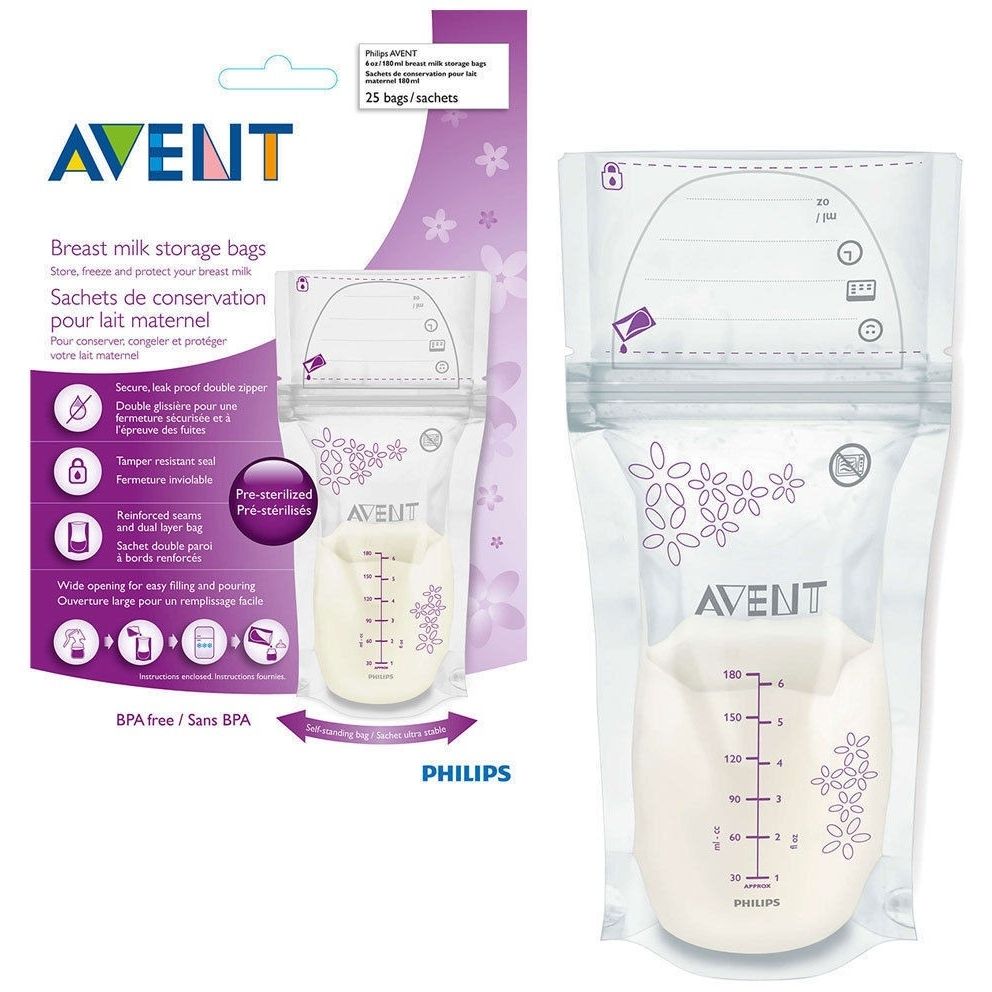 Pungi de păstrare a laptelui matern Philips Avent SCF603/25, 25 de pungi presterilizate, capacitate pungă 6 oz/180 ml