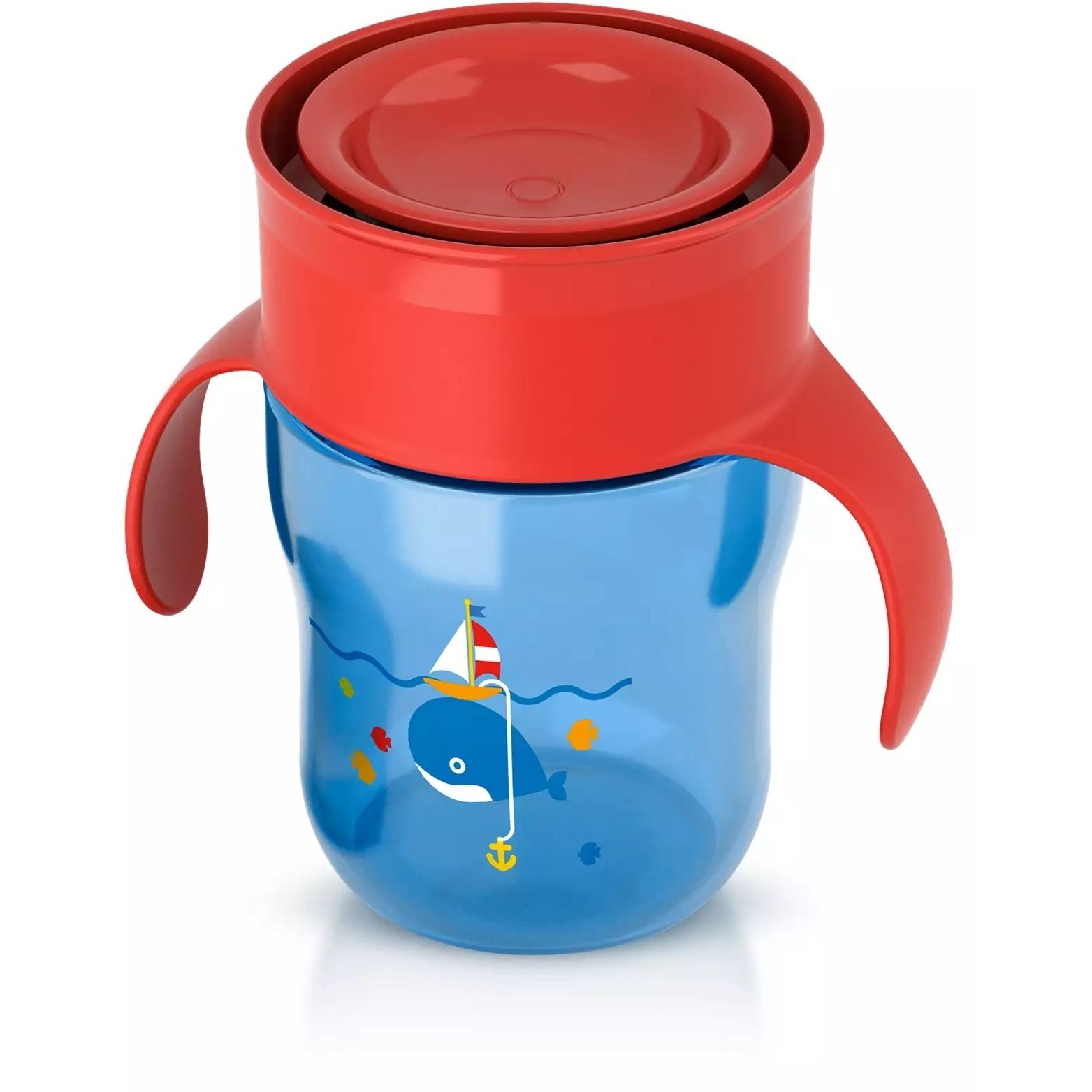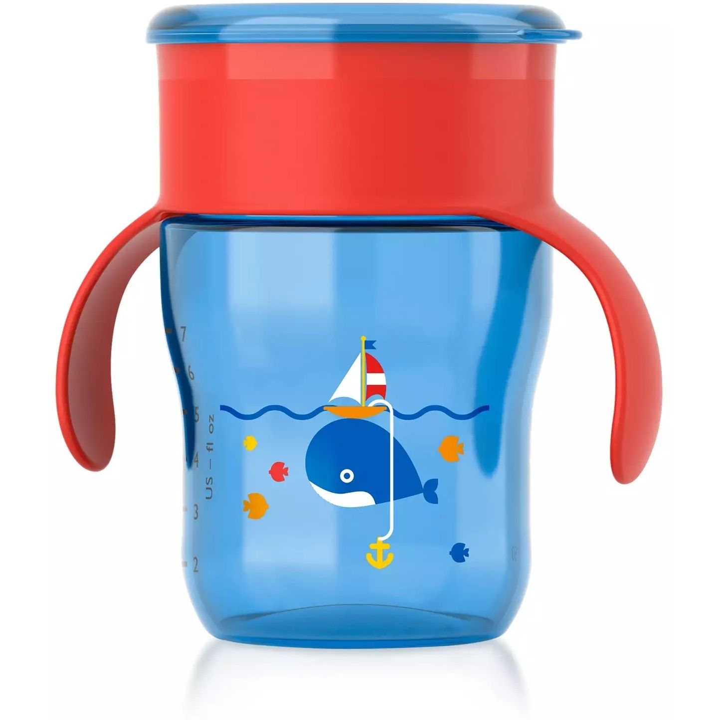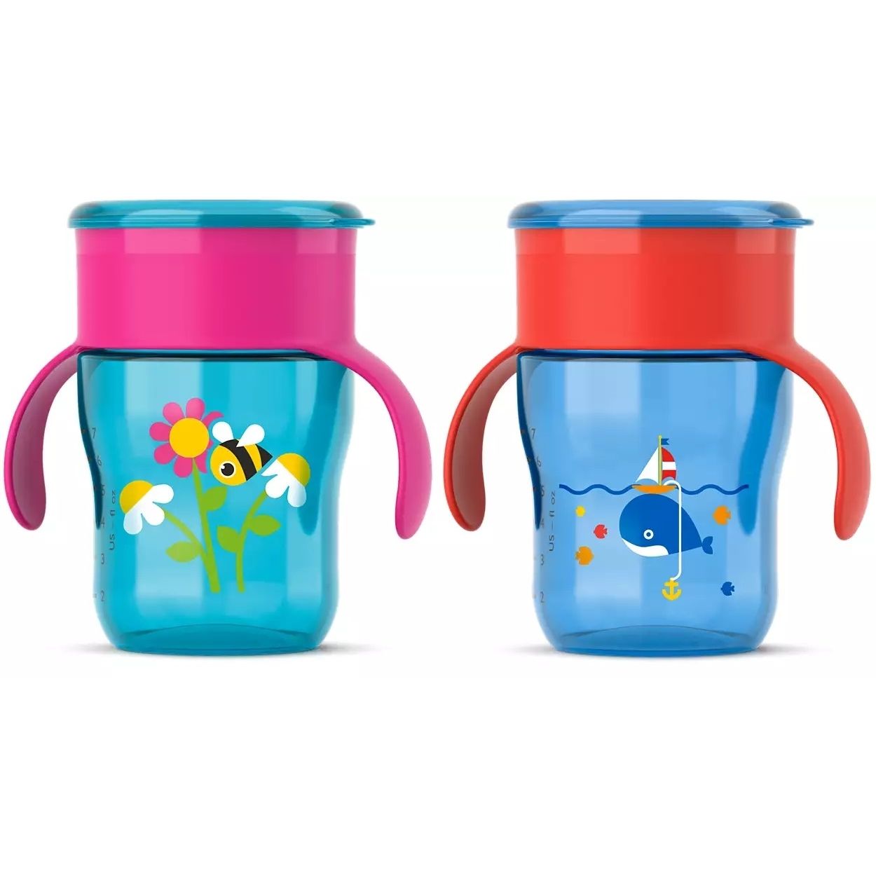 Mânerele oferă copilului opţiuni de prindere. Cana are mânere integrate, oferind copilului posibilitatea să o ţină de recipient sau de mânerele uşor de apucat.