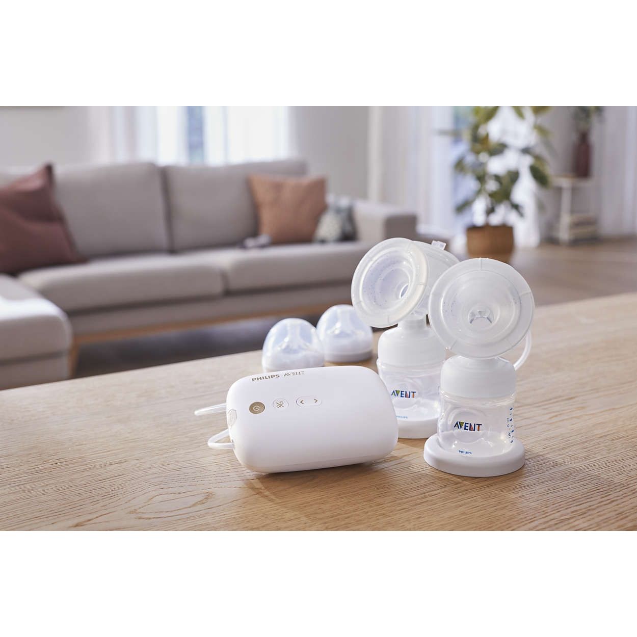 Colectează-ţi laptele fără a te apleca. Stai relaxată în timp ce îţi colectezi laptele datorită designului care îţi permite să stai cu spatele drept, fără a te apleca în faţă. Nu este nevoie să te apleci, poziţie comodă de colectare dovedită clinic*. Pe baza rezultatelor testelor clinice efectuate pe 20 de participante (2019); 90 % dintre participante găsesc comodă poziţia de colectare a laptelui (cu pompă electrică simplă); 95 % dintre participante găsesc comodă poziţia de colectare a laptelui (cu pompă electrică dublă).