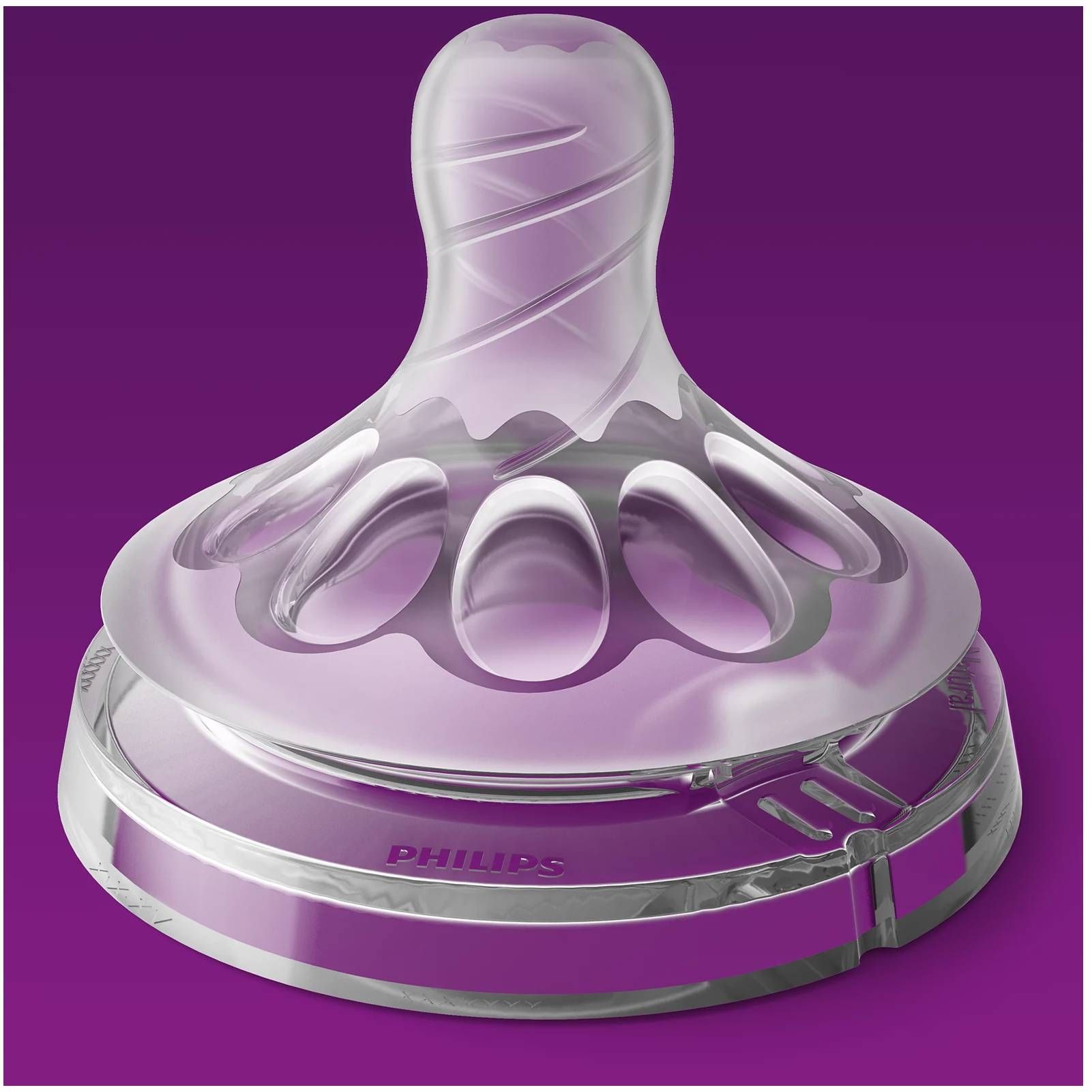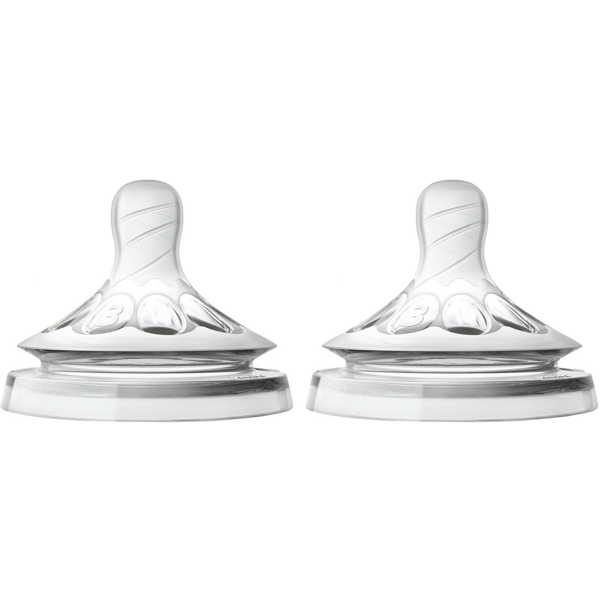 Set de 2 tetine Philips AVENT Natural SCF043/27, 3 luni, Tetine ultramoi și flexibile din silicon fără BPA, Debit mediu, Design spiralat cu petale, Supapă anti-colici, Anti-aplatizare