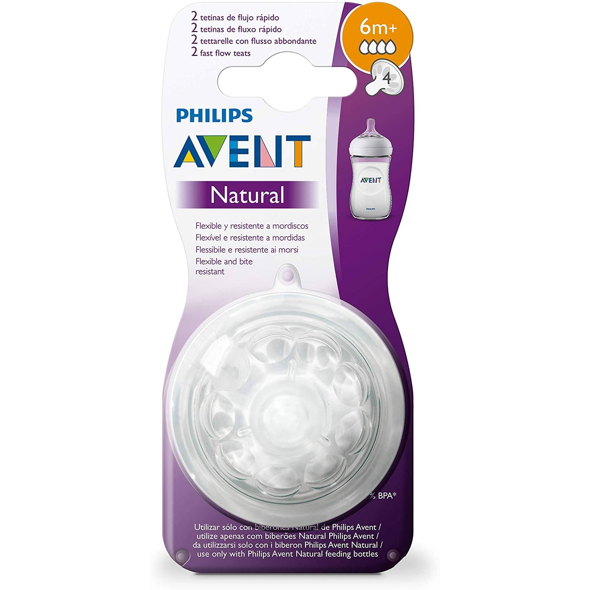 Sunt disponibile tetine cu diferite debite. Gama Philips Avent Natural oferă diferite niveluri de flexibilitate a tetinei și debite pentru fiecare etapă de dezvoltare a copilului.