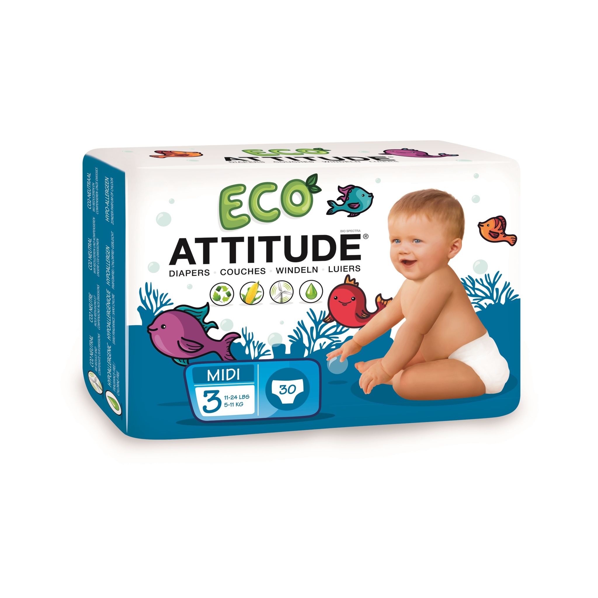 ATTITUDE Scutece ecologice de unica folosinta marime 3 (5-11kg), 30 Buc