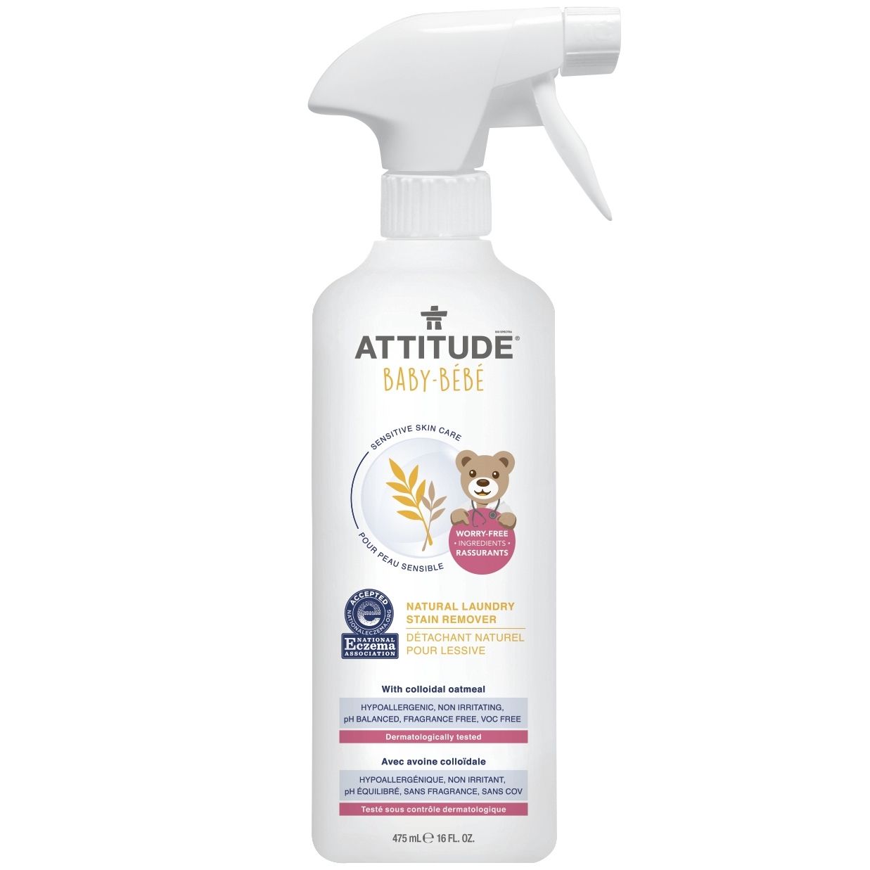 ATTITUDE pentru pielea sensibilă, pentru pielea naturală, pentru spălarea petelor pentru copii este făcută cu VOC și fără îngrijorare, astfel încât să nu-i facem niciodată pe micuții dumneavoastră să fie iritati. Folosind ingrediente eficiente pe bază de plante și minerale, funcționează ca și magia: doar pulverizați, frecați, așteptați și clătiți petele. Formula noastră fără parfum, hipoalergenic este testul dermatolog și certificat de Asociația Națională pentru Eczemă!