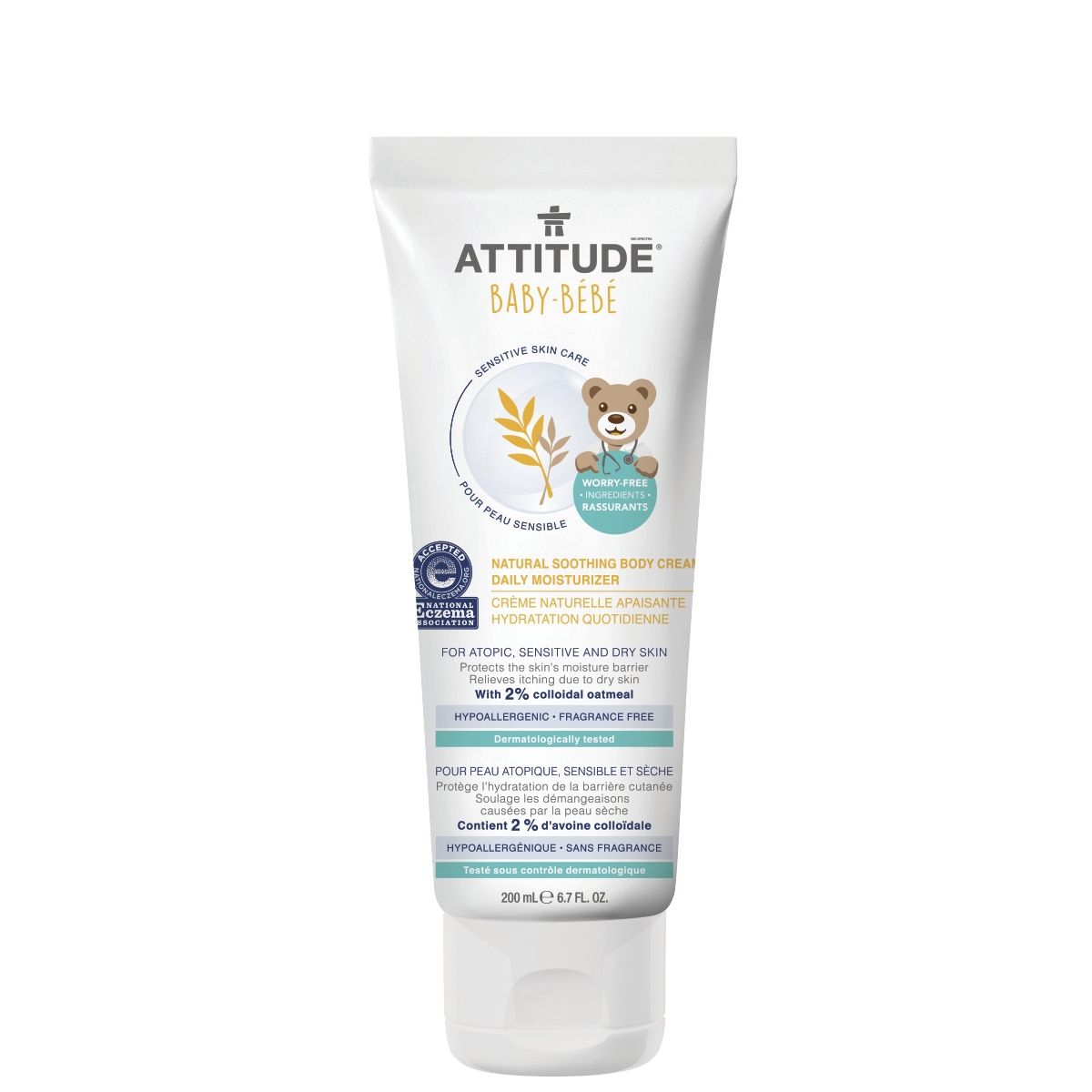 Pielea subtire poate fi, de asemenea, foarte sensibila si usor de iritat; de aceea hidratantul nostru zilnic pentru ingrijirea pielii cu sensibilitate naturala a bebelusilor utilizeaza numai ingrediente fara parfum, pe baza de plante, cum ar fi 2% fulgi de ovaz coloidal si ulei de ovaz, pentru a pastra pielea protejata, umezita si hidratata toata ziua ATTITUDE Skin Crema calmanta de uz zilnic este conceputa pentru sugari cu pielea exceptional de delicata. Formula noastra fara sulf si compusi chimici este facuta pentru a pastra pielea extra-delicata folosind ingrediente naturale cum ar fi fulgi de ovaz de coloidal cu efect calmant. Este certificata de Asociatia Nationala pentru Eczema si de EWG. Verificata, deoarece dorim doar cele mai bune pentru tine si familia ta.