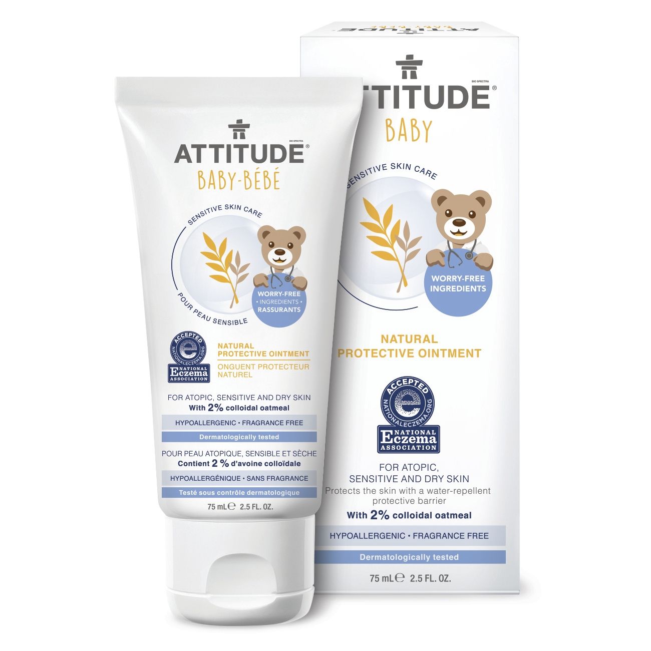 ATTITUDE va ofera o solutie 100% naturala, eficienta si sanatoasa Pentru piele atopica, sensibila, uscata Stiati ca apa reprezinta pana la 73% din greutatea nou-nascutului? Nu-i de mirare ca el sau ea este atat de moale si pufosel! In timp ce pot avea multa apa in interior, doriti sa pastrati cat mai mult posibil pielea delicata a micutului uscata la exterior. Acesta este motivul pentru care ATTITUDE Sensitive Skin Natural Unguent de protectie pentru copii formeaza un film impermeabil, de protectie pentru a restabili bariera pielii lor. Folosim ingrediente hipoalergenice pe baza de plante si minerale, cum ar fi uleiul de ovaz coloidal calmant si uleiul de ovaz, pentru a proteja, calma si hidrata pielea chiar si cu expunere repetata la apa. Produs hipoalergenic Fara parfum.