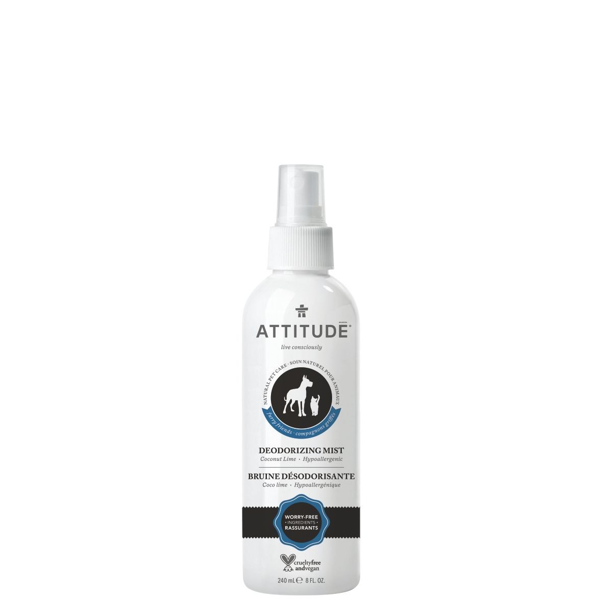 Spray-ul natural dezodorizant de la Attitude este special creat pentru a împrospăta blana animalului de companie între îmbaieri sau şedinţe de îngrijire şi toaletare. Oferă o formulă naturală hipoalergenă cu o aromă discretă de cocos şi lime, eficientă şi perfect sigură pentru sănătatea animalelor.