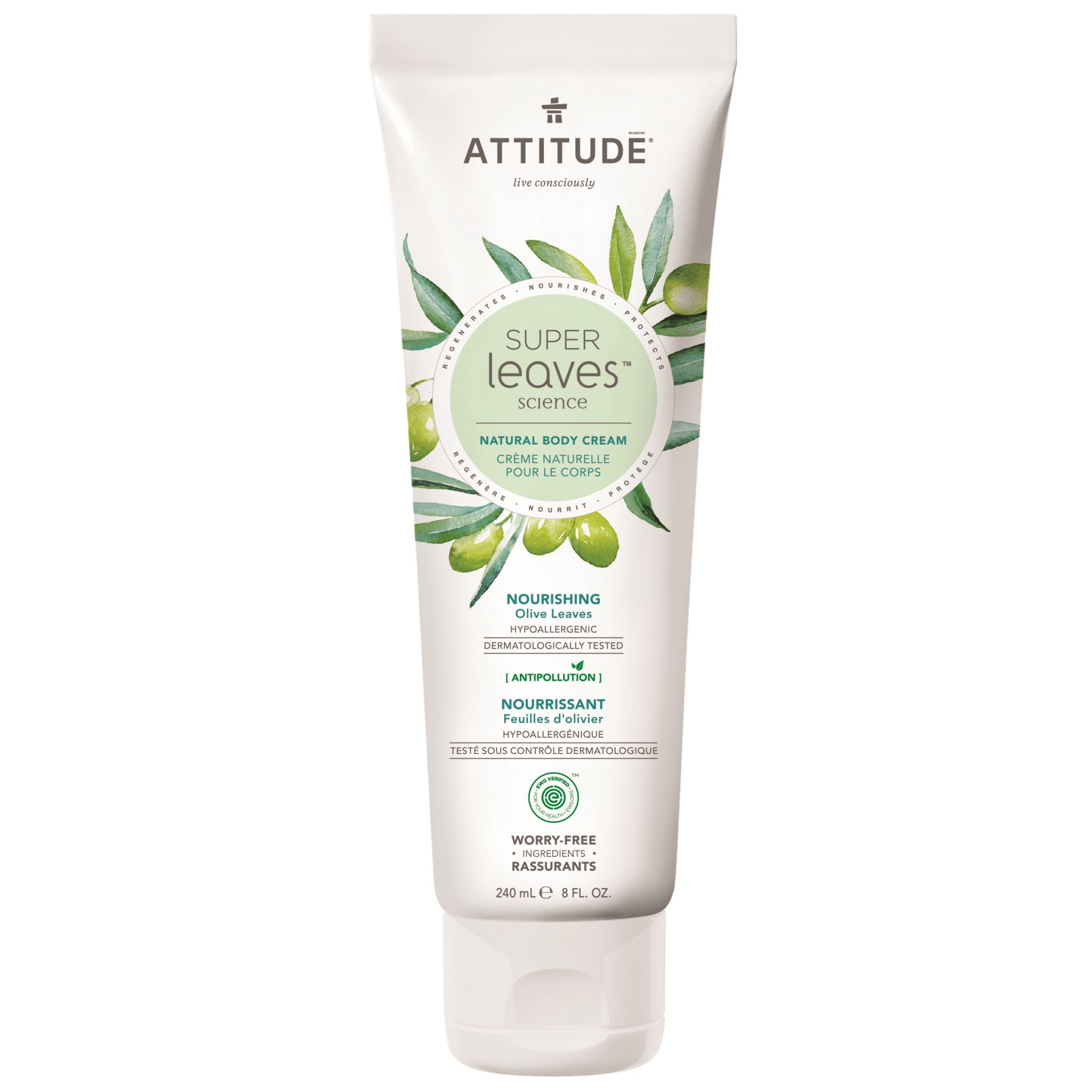 Știați că măslinele sunt bogate în grăsimi sănătoase și antioxidanți? De fapt, frunzele de măsline conțin și aceste substanțe nutritive sănătoase. Cu o aromă care ne aduce aminte de pere și ghimbir, crema de corp Super frunze de la ATTITUDE este îmbogățită cu bunătatea extractului de frunze de măsline cunoscut pentru a ajuta la hidratarea și calmarea pielii. EWG Verified ™, testată hipoalergenic și dermatologic, crema noastră de corp include extract de semințe de moringa, cunoscut pentru proprietățile antipoluante.
