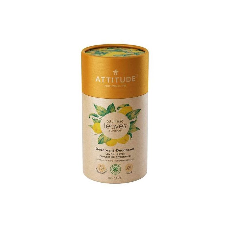 Atunci cand vine vorba de produse pentru ingrijirea personala, pe care le utilizam zilnic, ar trebui sa alegem intotdeauna produse naturale! Noul deodorant de la ATTITUDE este realizat din ingrediente naturale si nu contine ingrediente toxice sau aluminiu. Transpiratia este absorbita si mirosurile neplacute sunt eliminate in mod natural cu ajutorul ingredientelor extrase din amidonul din radacina arrow si din porumb. Deodorantul Superleaves ofera protectie de lunga durata - fara a inhiba sau bloca canalele sudoripare - si permite pielii sa respire natural. Extractul din frunze de lamaie, cunoscut pentru proprietatile sale de purificare si regenerare, adauga un miros subtil si placut! In plus, ATTITUDE foloseste un ambalaj inovator, care nu contine plastic si care este complet biodegradabil. Produs testat hipoalergenic si dermatologic. Nu contine alergeni, parabeni, parfum sau pudra de talc. Instructiuni de folosire: Deodorantul este usor de aplicat datorita texturii netede a untului de shea si a uleiului de cocos. Apasati cilindrul deodorantului in sus pentru a elibera produs. Aplicati pe pielea uscata. Incalziti produsul cateva secunde pe axila si apoi aplicati. Nu folositi produsul in cazul in care pielea dumneavoastra este iritata. Intrerupeti utilizarea daca apar iritatii ale pielii. Pastrati deodorantul la o temperatura de maximum 30°C. INGREDIENTE: Amidon din radacina arrow (maranta), unt de shea, ulei de cocos, amidon de porumb, alcool cetilic, alcool stearilic, ulei de ricin, emolient coco-caprylate/caprate, ceara de candelilla, ceara de carnauba, extract de frunze de citrice (lamaie), extract de frunze de rozmarin, 3-hexenol (frunze verzi), citrat de trietil, dimethyl heptenal (fructe).