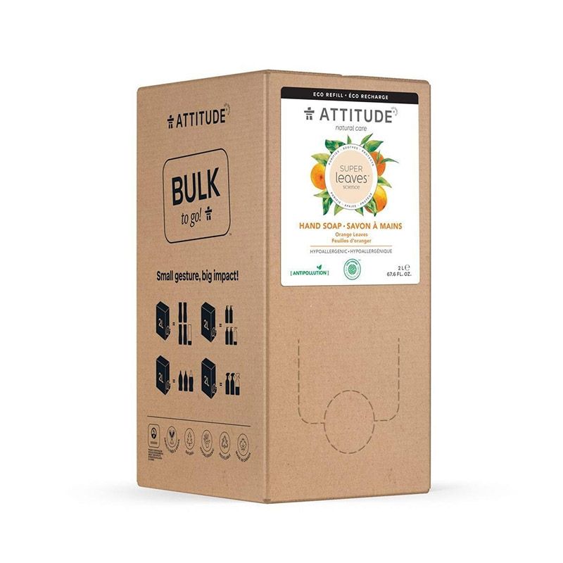 Reutilizati si reumpleti sticla sapunului dumneavoastra de maini! E atat de simplu cu ajutorul rezervelor disponibile acum de la ATTITUDE! Cutiile inovatoare folosesc cu 82% mai putin plastic decat ambalajul clasic al acestui sapun de maini si include o cantitate de patru ori mai mare! Sapunul lichid de maini cu ingrediente naturale, pe baza de frunze de portocal ajuta la restabilirea stralucirii pielii. Pe langa actiunea de hidratare intensa, acesta are un parfum revigorant de portocale. Lasati puterea frunzelor sa lucreze pentru dumneavoastra pentru a va oferi o piele catifelata si hidratata. Instructiuni de folosire: Pentru cutie: pentru a elibera robinetul dozator, impingeti folosind presiune pe marginile interioare ale zonei punctate care apar pe carton. Se va elibera acea zona si apoi veti putea trage spre exteriorul cutiei de carton robinetul dozator. Rotiti de acesta pentru a regla debitul sapunului de maini. Asigurati-va ca toate recipientele pe care doriti sa le umpleti cu sapun de maini sunt curate si uscate. Pentru recipientul cu sapun de maini: Pompati o cantitate mica de sapun lichid in maini, spalati usor, apoi clatiti. INGREDIENTE: Apa, cocosulfat de sodiu, clorura de sodiu, cocoglucosida, glicerina vegetala, decil glucozid, oleat de gliceril, acid citric, extract de nasturtium officinale, extract tropaeolum magus, maltodextrina, extract de seminte de moringa oleifera, extract de frunze de citrice aurantium dulcis (portocala), benzoat de sodiu, sorbat de potasiu, decanal (fructe), pentadecalactona (fruct), cetona de zmeura.