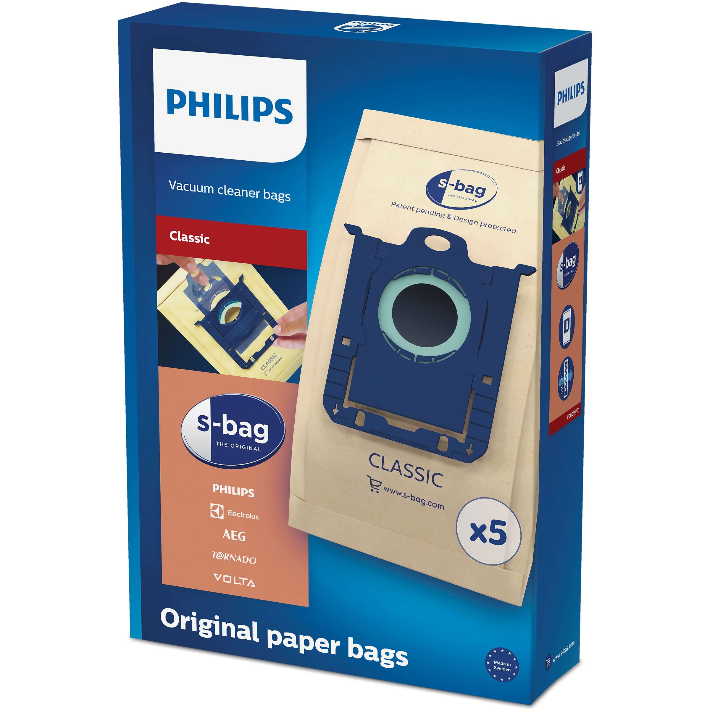Un standard universal pentru o alegere simplă. Sacul original Philips s-bag® poate fi utilizat pentru toate aspiratoarele cu sac produse de Philips şi Grupul Electrolux (Electrolux, AEG, Volta, Tornado). Uită de grija căutării interminabile a unui sac de praf şi caută doar sigla s-bag®.