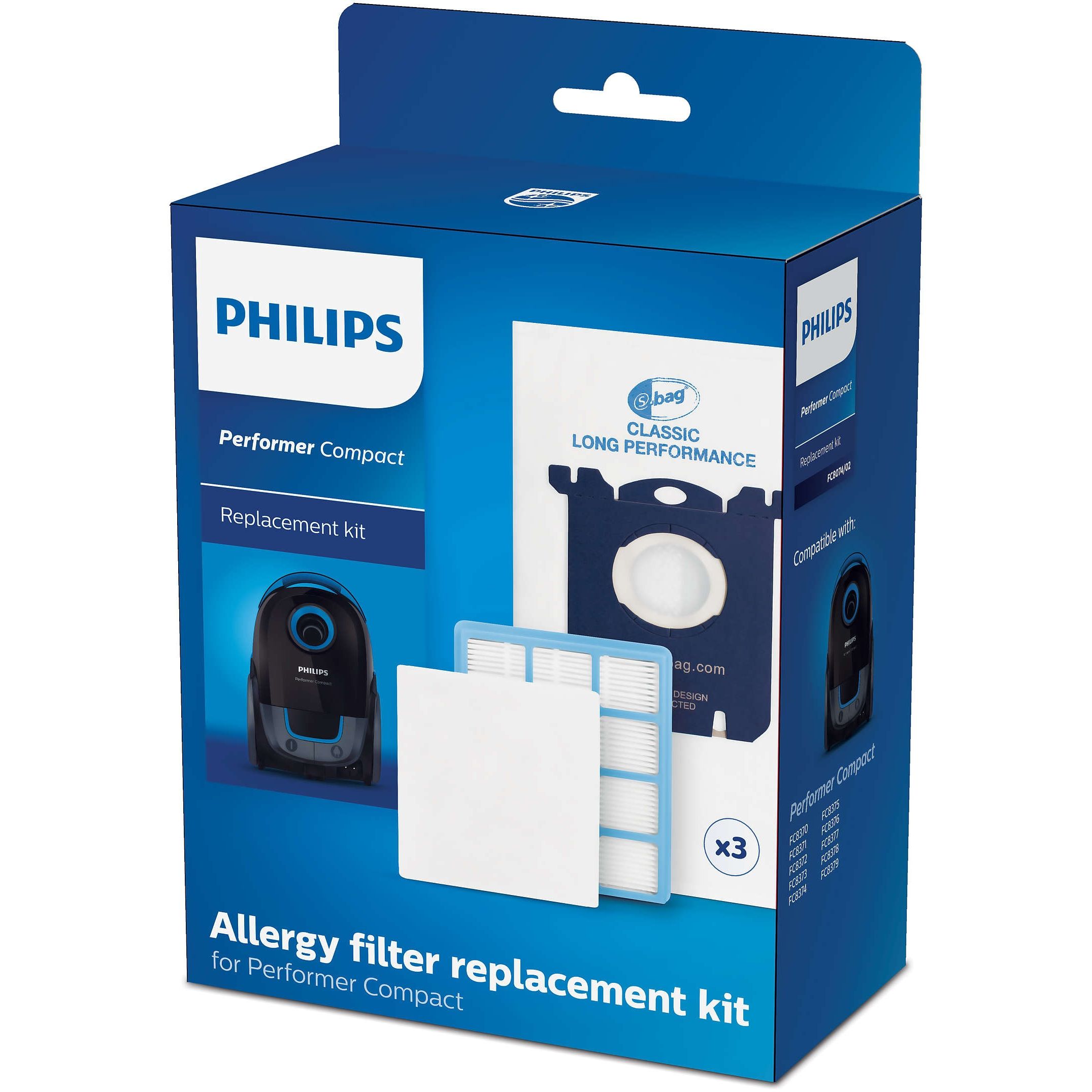 Saci de praf originali s-bag® Classic Long Performance. Kitul conţine 3 saci de praf originali s-bag® Classic Long Performance. Acest tip de sac original de praf de la Philips a fost conceput pentru a oferi o performanţă îndelungată aspiratorului, adică un grad ridicat de performanţă şi filtrare maximă, până când sacul se umple şi poate fi eliminat.
